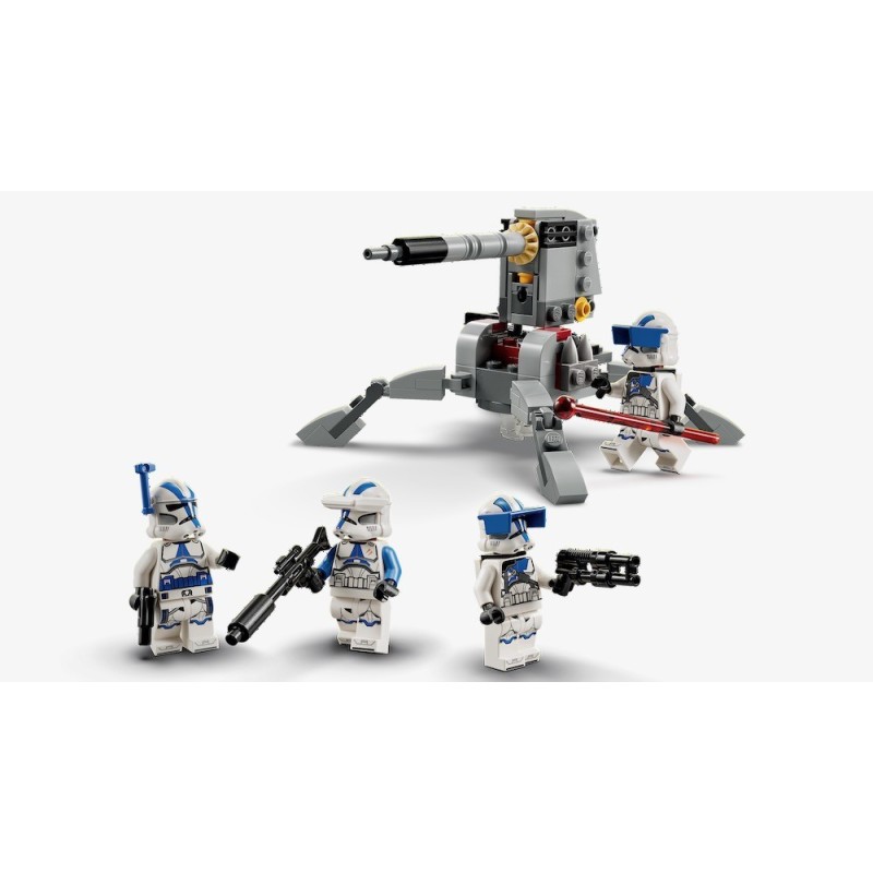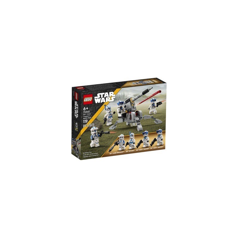 Los y las peques podrán liderar su propia unidad de soldados clon de la 501 con este Pack de Combate LEGO® Star Wars™ (75345) para mayores de 6 años. Incluye 4 minifiguras LEGO (novedad en enero de 2023): un oficial de la 501, un especialista clon de la 501 y 2 soldados pesados de la 501, cada uno con un arma. El set contiene también un cañón antivehículo AV-7 construible con cañón automático y asiento para una minifigura LEGO. Este popular juguete de construcción, fantástico como regalo para niños, les permite recrear la acción de Star Wars: Las Guerras Clon e incorporar nuevas y divertidas posibilidades de juego a sus otros sets LEGO Star Wars.