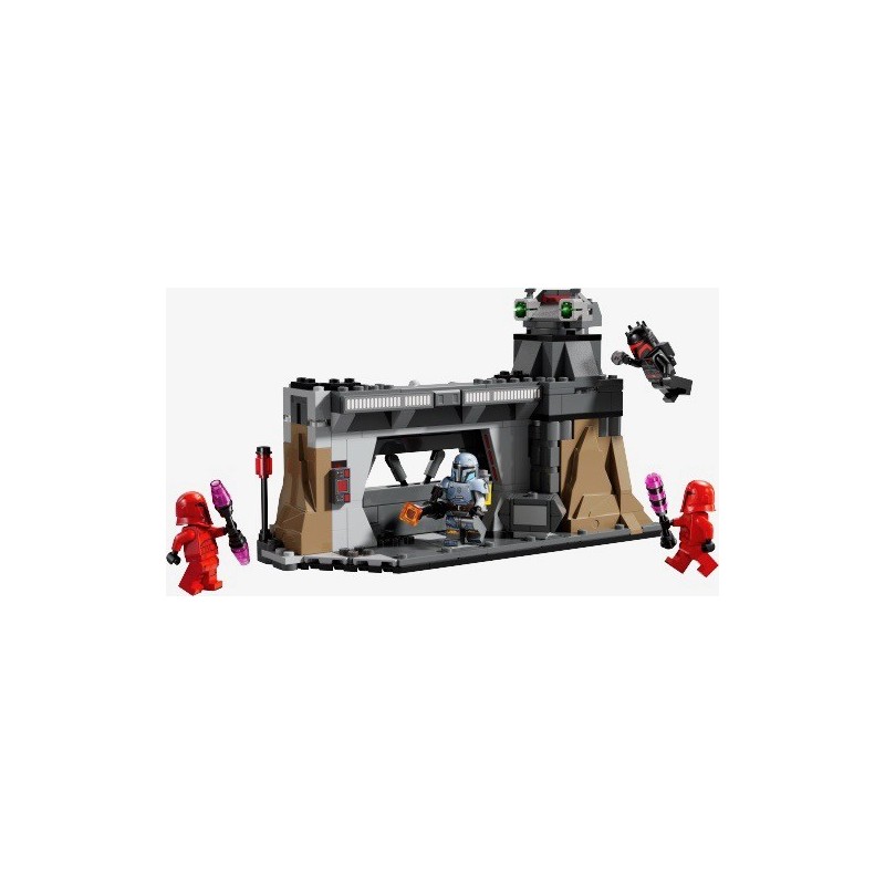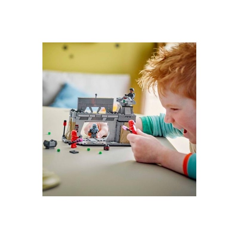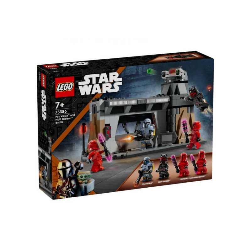 Edad recomendada: +7 años. Construye el momento de tensión de una épica escena de la temporada 3 de Star Wars: The Mandalorian con el set LEGO® Star Wars™ Batalla entre Paz Vizsla y Moff Gideon (75386). Este juego de juguetes LEGO para construir, un regalo genial para niños, niñas y fans a partir de 7 años, trae una base Mandaloriana con una puerta blindada que se cierra de golpe, paneles de control y una torreta giratoria que dispara. Incluye también 4 minifiguras LEGO Star Wars: The Mandalorian coleccionables para interpretar la lucha de Paz Vizsla contra Moff Gideon (con armadura de soldado oscuro) y los guardias pretorianos imperiales, además de accesorios, como la mochila propulsora de Moff Gideon y una caja de almacenamiento que contiene un detonador térmico.