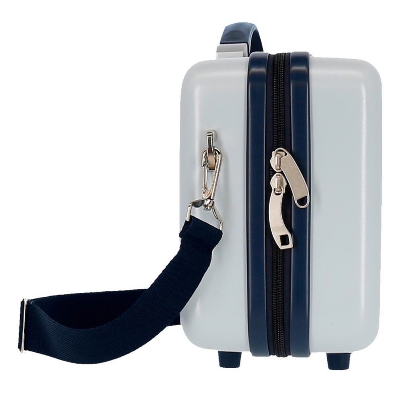 Neceser de 29 cm x 21 cm x 15 cm fabricado en ABS. Contiene dos compartimentos, un bolsillo con cremallera y un bolsillo con goma elástica para mejorar la organización. Posibilidad de llevarla con la bandolera que incorpora o de adaptarla a la maleta con la banda trasera para ahorrar espacio. Tiradores de cremallera con agujeros para candado.