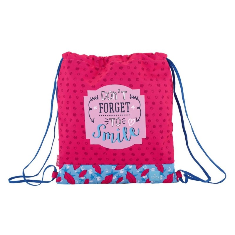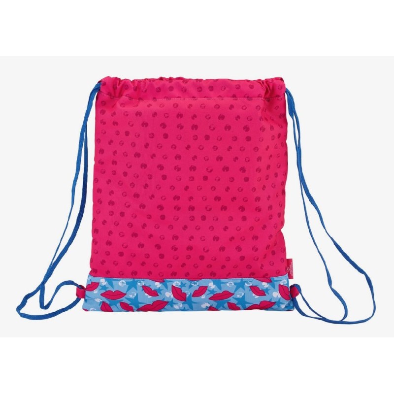 Saco plano con un bonito diseño de la colección Lips de la marca Moos. Dimensiones: 40 x 35 cm.Tiene un bolsillo con cierre de cremallera en el interior. Fabricado por Safta.