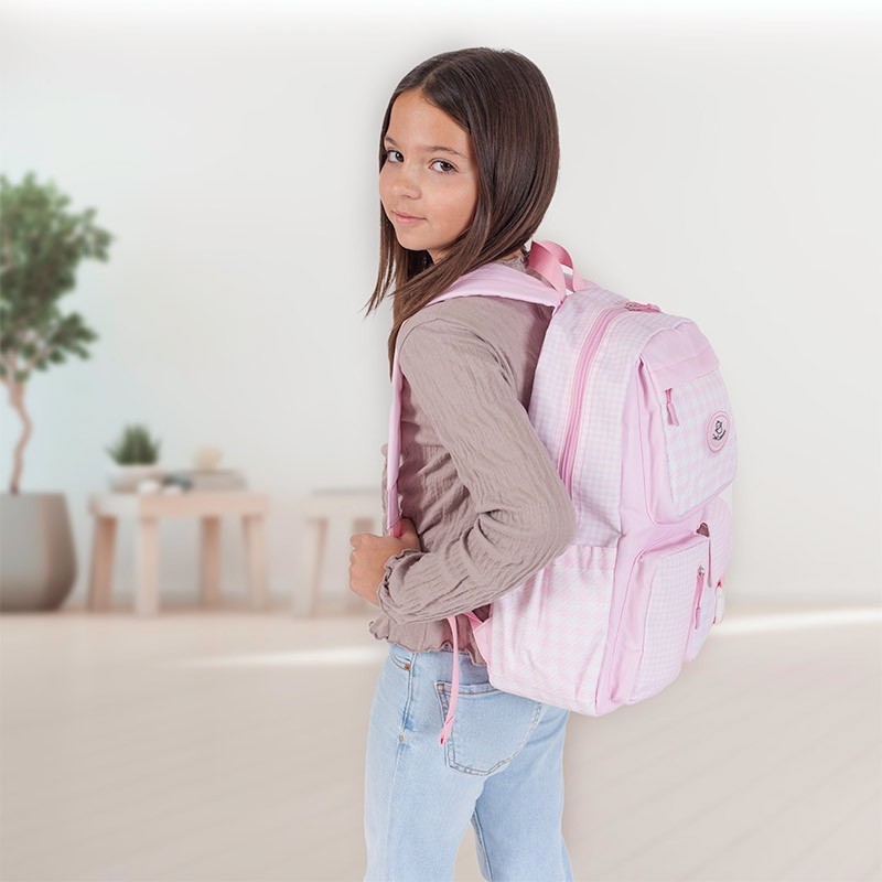 Llega la vuelta al cole, y que mejor que llevar todo ordenado y a la mano, para ello te presentamos esta fantástica Mochila Escolar Niza Multi Bolsillos DeCuevas 10346. Ha sido fabricado con materiales resistentes de alta calidad, con un diseño moderno y elegante en color rosa y blanco y espacio suficiente para poder guardar todo el material escolar. Tiene un gran compartimento para que puedas guardar los libros, además de otros más pequeños en la parte exterior, dos laterales, y 3 centrales de diferentes tamaños donde todo quedará a la mano. Además los tirantes son acolchados para que no te molesten en los hombros cuando vayas al cole. Completa toda la colección Niza para tener a conjunto todo lo necesario en la vuelta al cole. Edad recomendad: +3 años Incluye: Mochila Escolar. Medidas aproximadas: 40 cm de alto, por 30 cm de ancho y 18 cm de fondo.