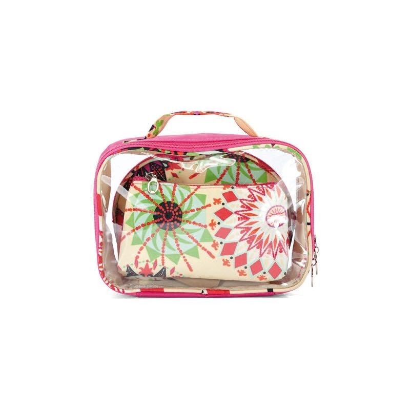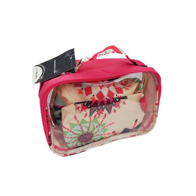 Juego de 3 neceseres hecho de Poliéster-PVC. Varios modelos a elegir según disponibilidad. Medidas: - Juego 1: 23 x 17 x 09 cm. - Juego 2: 18 x 14 x 06 cm. - Juego 3: 17 x 11 x 03 cm.