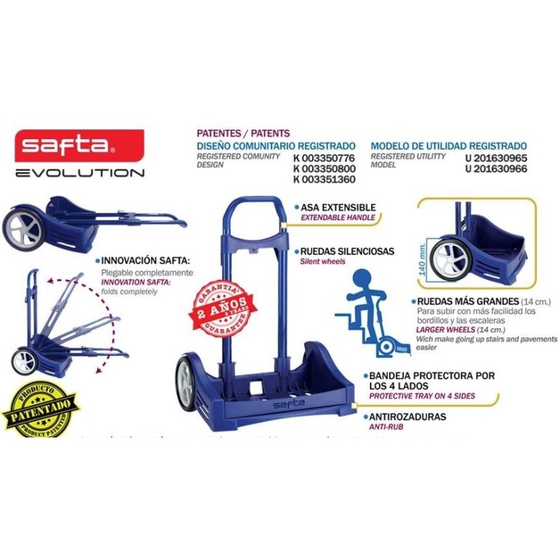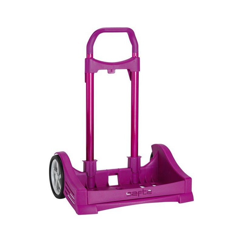 Carrito portamochilas plegable de color fucsia El carrito es completamente plegable, para un almacenamiento más cómodo y que ocupe menos espacio Dispone de sistema para evitar el plegado Ruedas silenciosas Las ruedas tienen 14 cm de diámetro Estas ruedas más grandes permiten subir con más facilidad los bordillos y las escaleras Asa extensible Bandeja protectora por los 4 lados y antirozaduras, para porteger la mochila El frontal de la bandeja es regulable en 4 posiciones para adaptarlo al tamaño de cualquier mochila Muy resistente Carga máxima: 12 kg Fabricado en aluminio y con polipropileno de calidad