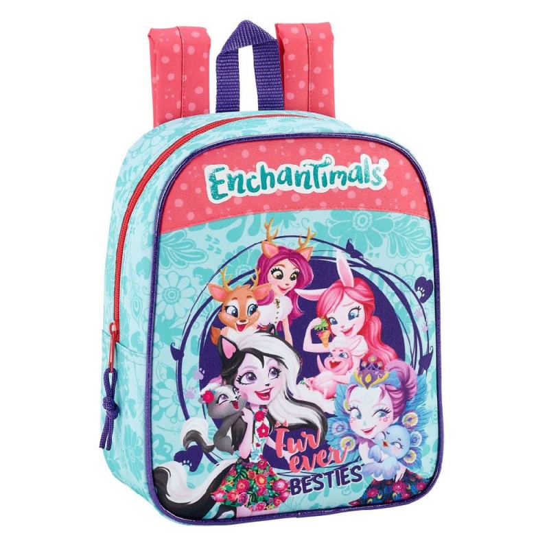 Mochila de guardería adaptable a carrito portamochilas. Tarjeta de identificación personal. Asa de mano en la parte superior. Medidas: 27 cm. de alto x 22 cm. de ancho x 10 cm. de fondo. Fabricada por Safta.