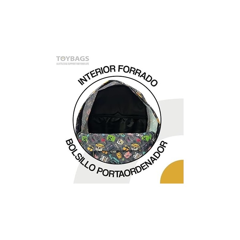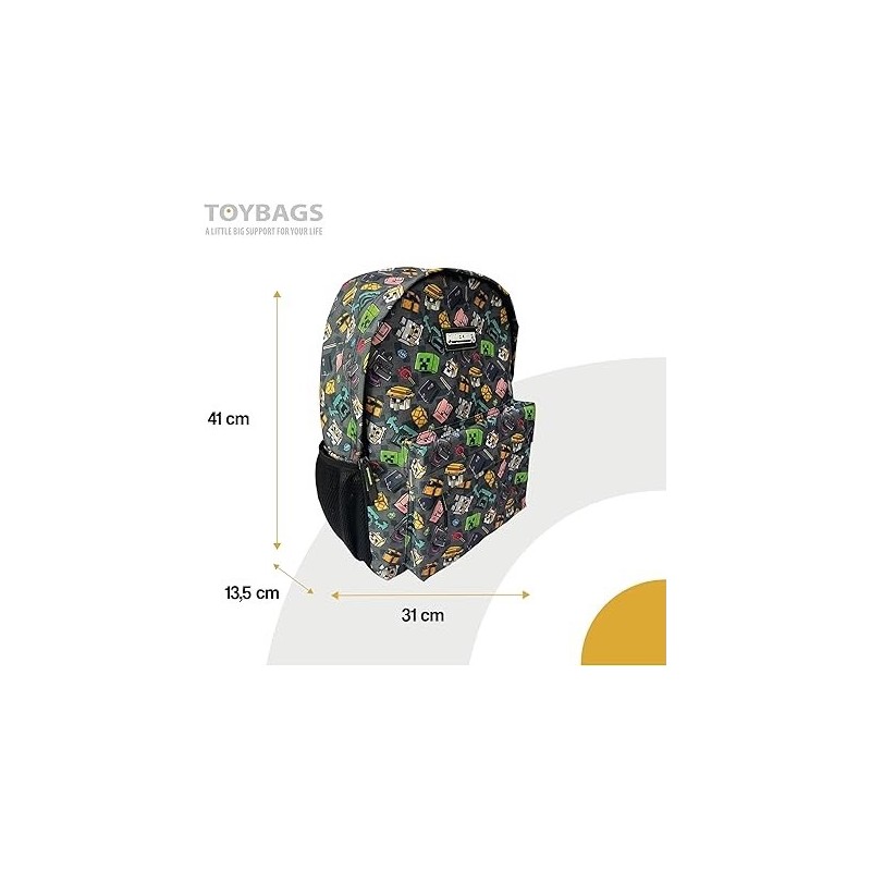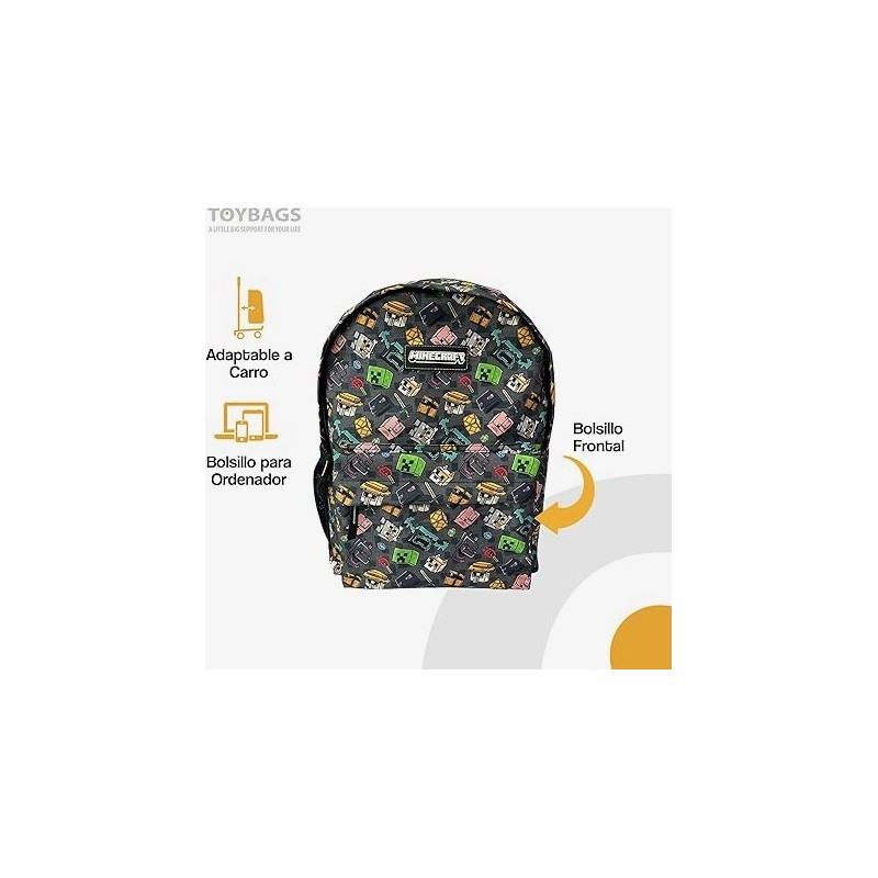 Corte americano 42 x 31 x 13,5 cm. Minecraft Pixel 25 Mochila Americano ADAPTABLE A CARRO, ESPALDERA ACOLCHADA. Compartimento portalaptop. Bolsillo lateral. Interior totalmente forrado y personalizado. Espaldera acolchada. Tirantes ergonómicos, ajustables y acolchados. Acabados y cremalleras de alta calidad. Buena sensación de tacto. Material poliester de tela cruzada, durable y transpirable. Resistente, espaciosa y organizada. Mochila adaptable carro.