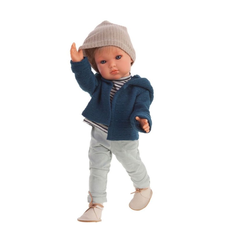 El muñeco Ben, de 45 cm, va preparado para salir a pasear con su moderna chaqueta azul y su gorro. Ojos marrones, siempre abiertos. Pelo moreno. Tiene el cuerpo entero de vinilo. Edad recomendada: a partir de 3 años. Las muñecas ANTONIO JUAN están realizadas íntegramente en España de manera única y artesanal, cuidando hasta el más mínimo detalle.