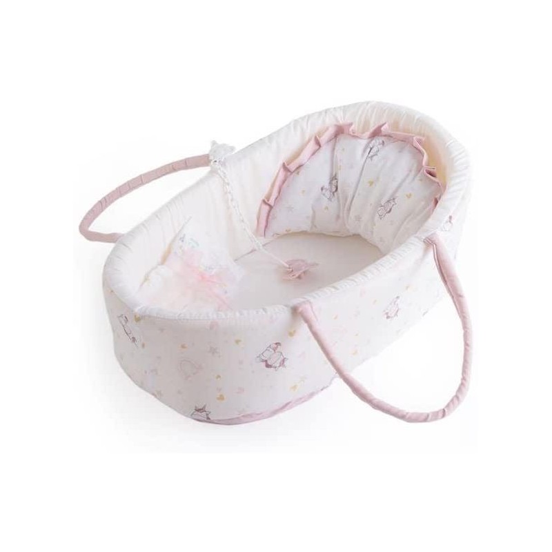 Capazo de unicornios de Muñecas Antonio Juan. Para muñecas de hasta 42 cm. Incluye un pañal y un chupete.