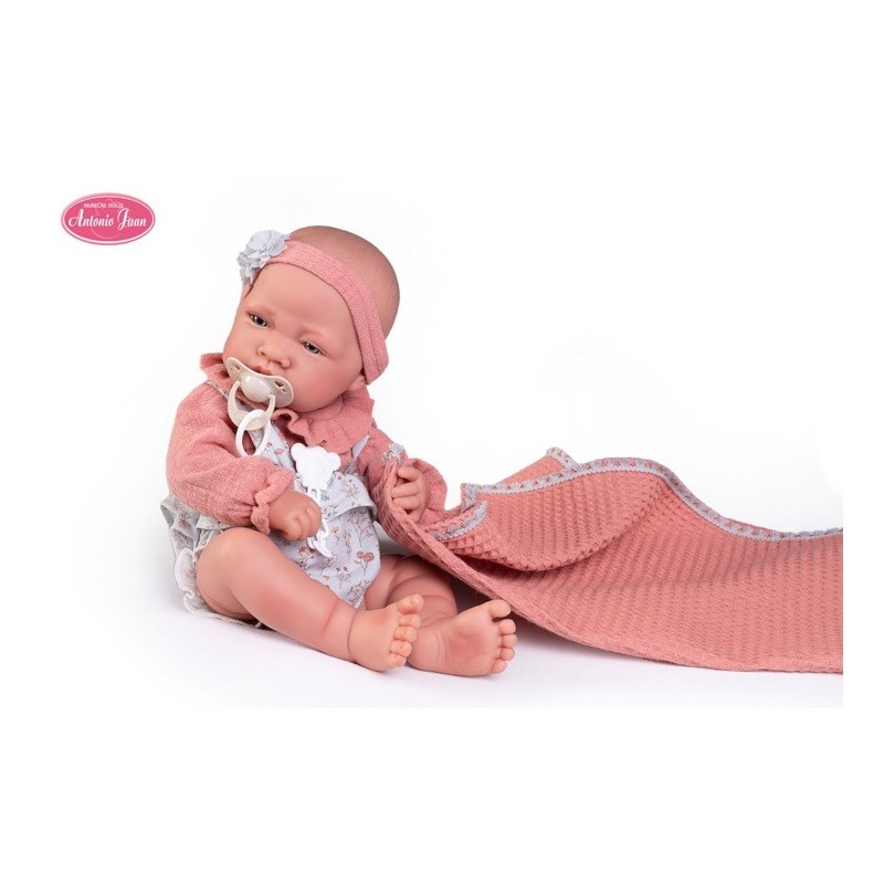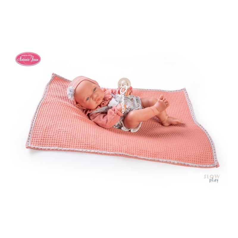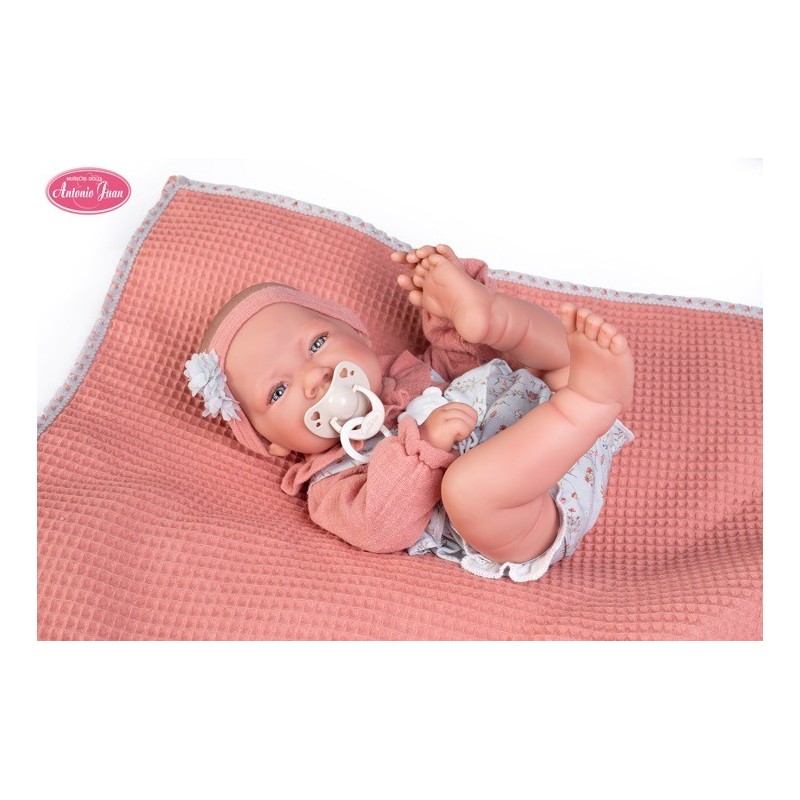 ANTONIO JUAN 50270, Recién Nacida con mantita primavera. TACTO ESPECIAL Y CUERPO DE VINILO SEXUADO. 42 cm. Peso muñeca: 975 gr