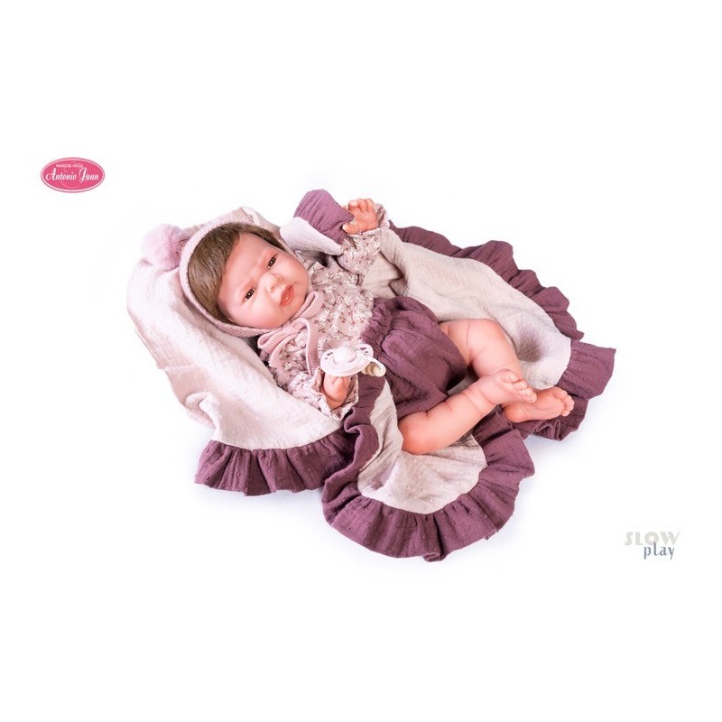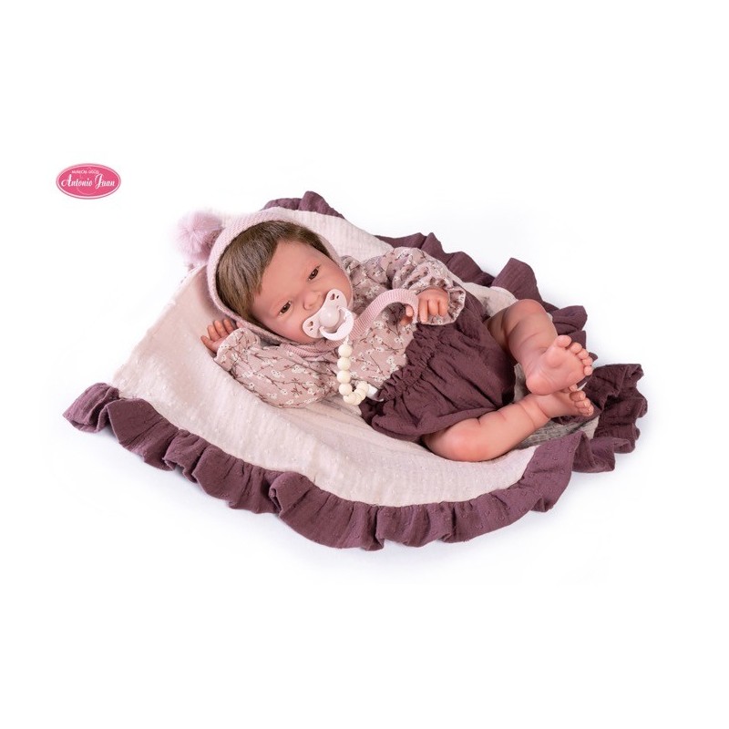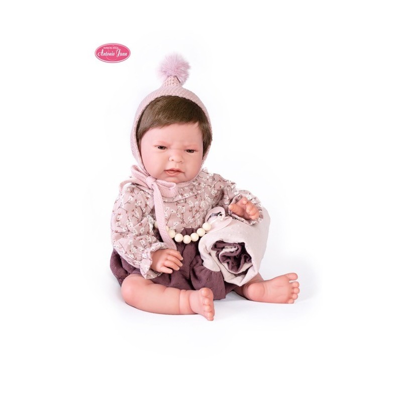 ANTONIO JUAN 80217, Sweet Reborn Lea con matita morada. CUERPO DE TELA Y TACTO ESPECIAL. 40 cm. Edad recomendada: +14 años. Peso muñeca: 1400 gr. Peso especial Sweet Reborn Lea con mantita morada, es como un auténtico bebé, con todas las características propias de un bebé de verdad: su piel sonrosada y suave, sus venitas, la manicura… Todo realizado a mano, para que sea un bebé como tú. Tiene el cuerpo de tela blandito para que le puedas dar suaves abrazos. Lea con mantita morada lleva un conjunto precioso con camisa de flores y culotte a juego con su manta con volante. Lleva un divertido gorro con pompón para ir calentita cuando sale de paseo contigo. No le falta detalle en su ropa y complementos. Su ropa está confeccionada con tejidos «Organic Cotton», lo que significa que en su cultivo y en su proceso de producción no se han utilizado productos químicos, solo naturales. Además lleva un pañal como un bebé de verdad. Puede colocarse en muchas posiciones como un bebé real porque sus extremidades giran, tiene movimiento, lo que le hace tener más realismo. Pesa 1400 gr. y mide 42 cm. ¡Y viene acompañado de su certificado de autenticidad, con una numeración única que garantiza su exclusividad como Reborn de Muñecas Antonio Juan!