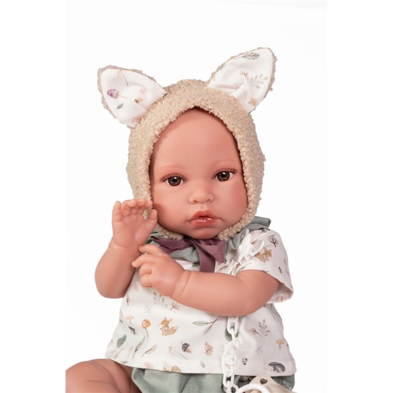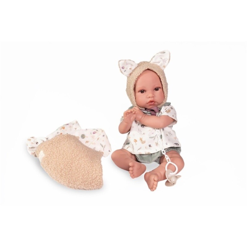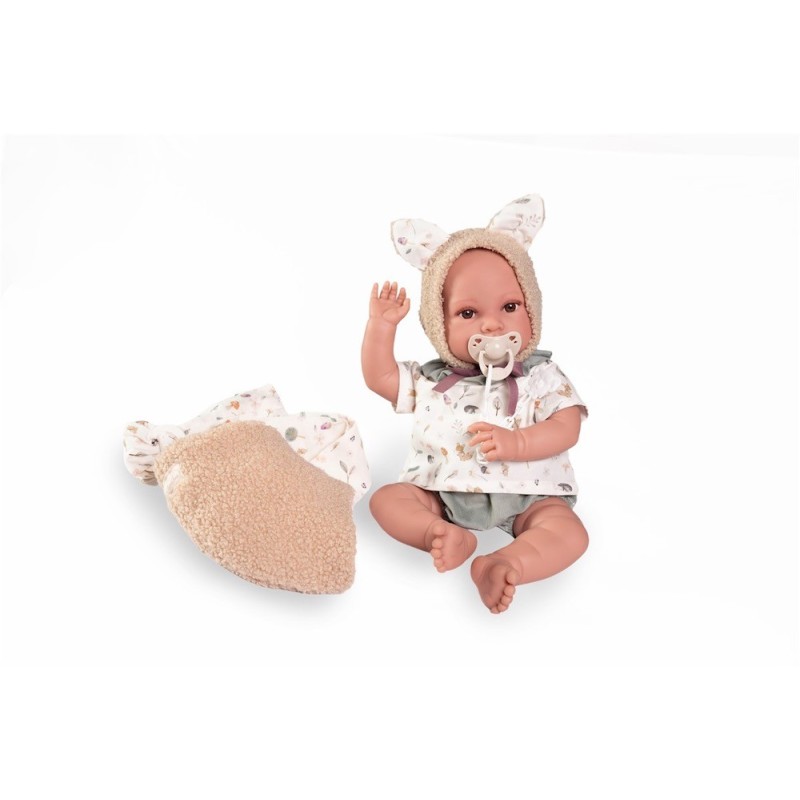 Edad recomendada: +3 años. Medidas: 42cm. Cuerpo de tela y extremidades rotatorias. Incluye: Capota, camiseta, culotte, portabebe y chupete. Erik es la nueva carita de la familia de Recién Nacidos. Lleva como complemento un portabebé para que puedas jugar con él y llevártelo de paseo a cualquier parte cómodamente. Su trajecito es muy divertido y su capota tiene hasta orejitas. Su cuerpo es de tela blandito para poder abrazarla suavemente y su cara y extremidades de suave vinilo. Nuestra Recién Nacida mide 42 cm. ¡Le encantará ir a jugar contigo! Puede colocarse en muchas posiciones como un bebé real porque sus extremidades giran, tiene movimiento, lo que le hace tener más realismo. ¿Hay algo más adorable que un bebé? Los Recién Nacidos son la esencia de Muñecas Antonio Juan. Un universo de dulzura creados para acompañar a los más pequeños a descubrir el mundo. Compañeros inseparables de largos días de juegos a los que no les falta detalle en sus tiernas facciones y calidad de su ropita y complementos.