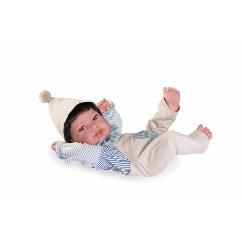 Edad recomendada: +3 años. Medidas: 42 cm. Cuerpo de vinilo sexuado. Incluye: Pelele, camisa, gorro y puf. ¡El circo ha llegado! Y nuestro Recién Nacido Pipo es el protagonista, sentado en su puf de colores a juego con su conjunto. Lleva un gorrito con pompón que le hace una carita muy divertida. Su cuerpo es de suave vinilo sexuado. Mide 42 cm y le encantará jugar contigo. ¿Hay algo más adorable que un bebé? Los Recién Nacidos son la esencia de Muñecas Antonio Juan. Un universo de dulzura creados para acompañar a los más pequeños a descubrir el mundo. Compañeros inseparables de largos días de juegos a los que no les falta detalle en sus tiernas facciones y calidad de su ropita y complementos.