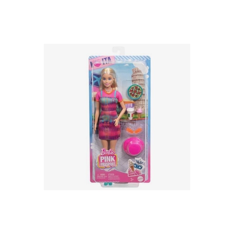 Pon rumbo a Italia con tu muñeca Barbie con este conjunto de viaje de Pink Passport. Está preparada para hacer turismo con su vestido veraniego y sus cómodas sandalias. También se incluye un sombrero, unas gafas de sol y un brazalete para añadir diversión y estilo.