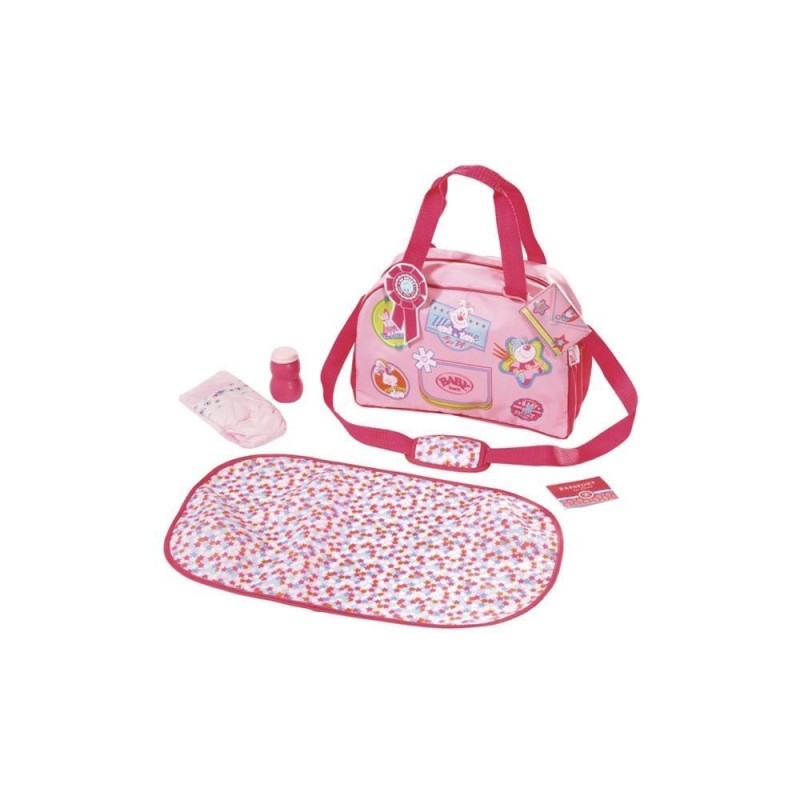La bolsa cambiador estampada de BABY born contiene todo lo que necesitas cuando salgas. La carterita del asa de mano de la bolsa es ideal para guardar el pasaporte de BABY born o la lista de la compra de mamá. Hay 2 modelos. Escoge tu preferido según su disponibilidad. Se venden por separado. Edad recomendada: a partir de 3 años.