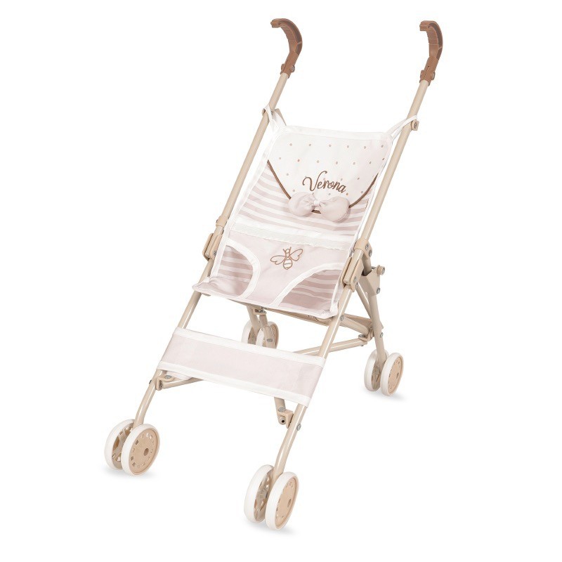 Edad recomendada para su uso: 3 años. Dimensiones aproximadas de la silla de muñecas: 56 cm de alto hasta el manillar, 28 cm de ancho y 42 cm de largo. Artículo para muñecas y muñecos bebés de hasta 48 cm de largo. Disfruta de cómodos paseos junto al bebé más divertido y la nueva Silla Plegable Verona, la más ligera y bonita de las sillas de paseo para bebés de juguete. Un artículo muy especial por su diseño, materiales y tamaño. ¡El regalo ideal para disfrutar del juego juego de imitación más completo e inspirador! Descubre muchos más carritos de juguete y accesorios para desarrollar el juego de imitación más creativo y divertido en nuestro nuevo surtido de artículos de la linea Verona. Sorprende a los peques con esta preciosa colección con colores cálidos y diseños que encantarán a los peques de la casa.