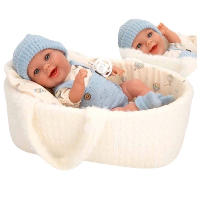 Peso: 6,98 kg. Cuerpo y extremidades de vinyl. Incluye capazo.