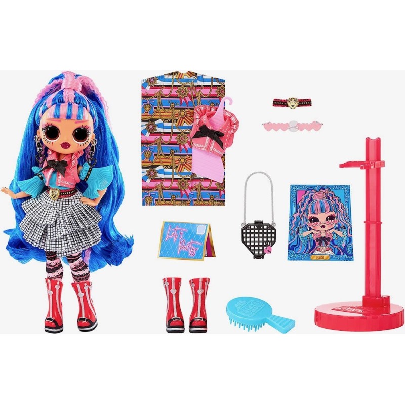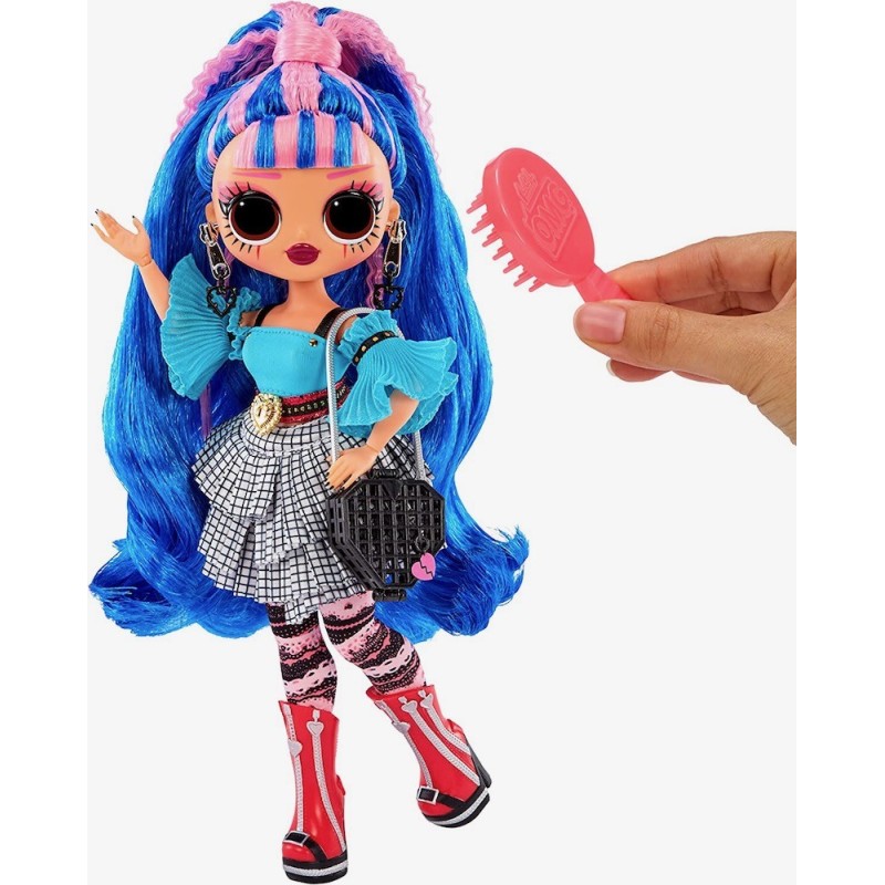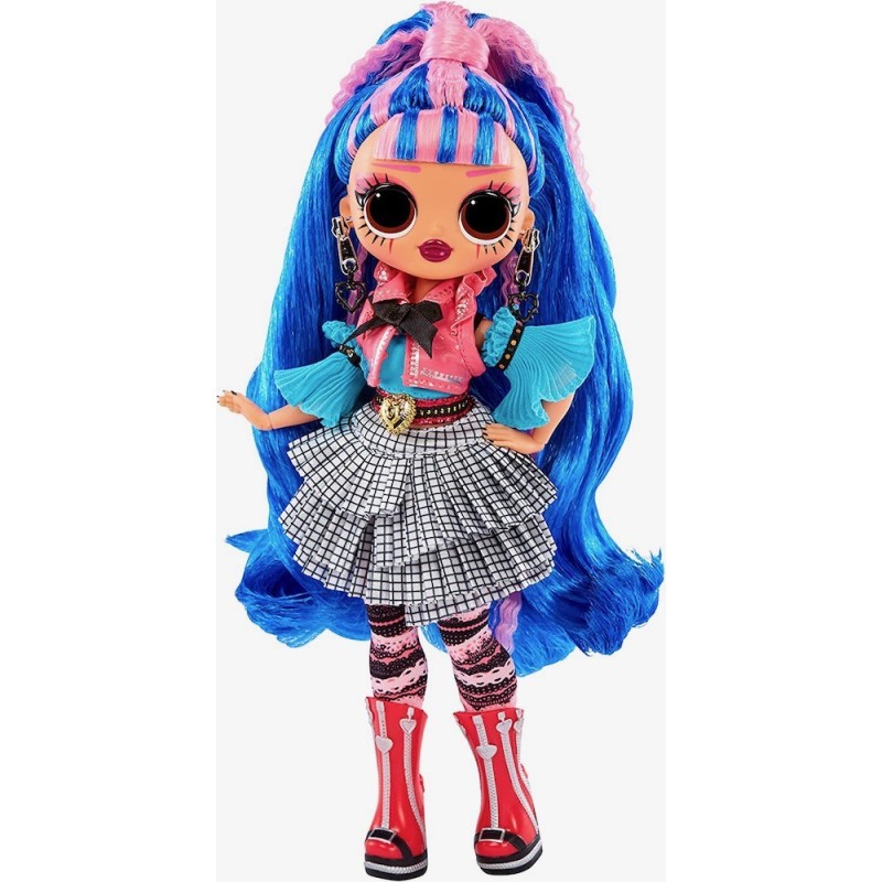 Esta reina baila al ritmo desu estilo de estrella de rock. Ponle su ropa y los accesorios y prepárala para subirse a la pasarela. Consejo: las manos de la muñecas son removibles para poder vestirla fácilmente. La caja incluye 20 sorpresas para descubrir, incluida una hermosa muñeca de moda con características especiales y peinado. A esta reina le gusta la música: puede parecer borde en el escenario, pero en el fondo es dulce y adorable. Recibirás: muñeca LOL Surprise OMG Queens, outfit, zapatos, gafas de sol, pendientes, collar, bolso, cepillo y horquillas para el pelo, bolsa para ropa, percha, invitación, póster y soporte para muñecas. Edad recomendada: +3 años.