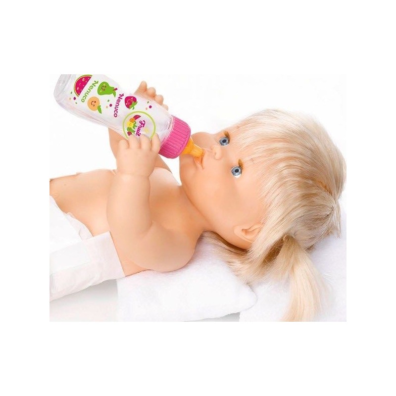 Dale la leche a tu Nenuco con este biberón mágico. Hay dos modelos: uno con tapón verde y otro con tapón rosa. Se venden por separado según su disponibilidad. El biberón mide 12,5 cm. Favorece las habilidades manuales, imaginación y creatividad Edad recomendada: +12 meses.