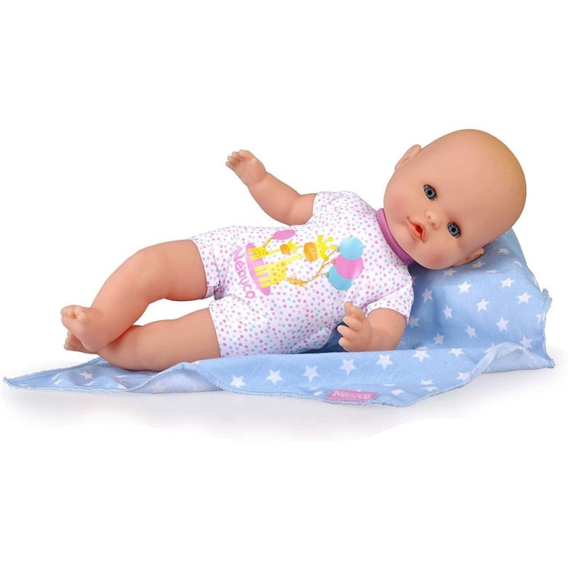 Muñeco bebé nenuco, de 35 cm, con sonidos de bebé que viene con su mantita, un recién nacido con ojos durmientes que emite sonidos de bebé cuando se le presiona la tripita, funciona con 3 pilas de botón lr44- incluidas. Edad recomendada: +12 meses.