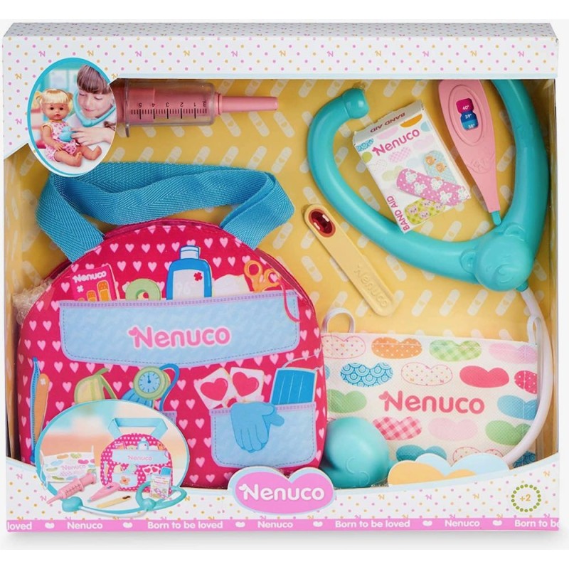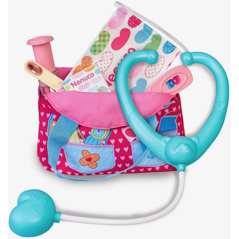 Con el set médico de Nenuco tendrás siempre todo lo que necesitas para cuidarle. Escucha su corazón con el estetoscopio, utiliza el termómetro y el palito de la garganta para comprobar si está todo bien, y después puedes ponerle la vacuna y una tirita para curarle. Y por supuesto, no olvides ponerle la mascarilla cuando termines el reconocimiento. Edad recomendada: +24 meses.
