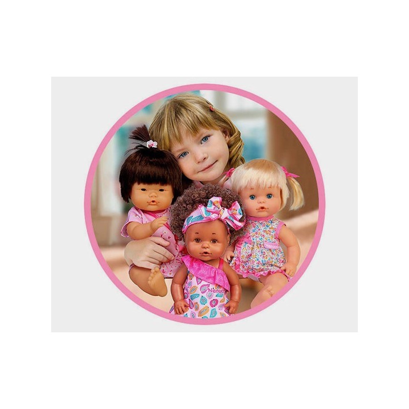 Las muñecas Nenucos del Mundo, son de 35cm y cuerpo duro. Este Nenuco representa los rasgos de origen asiático. Viene con un vestidito y un accesorio para el pelo a juego.