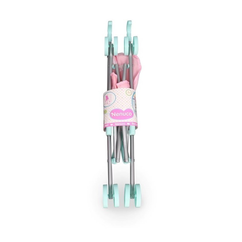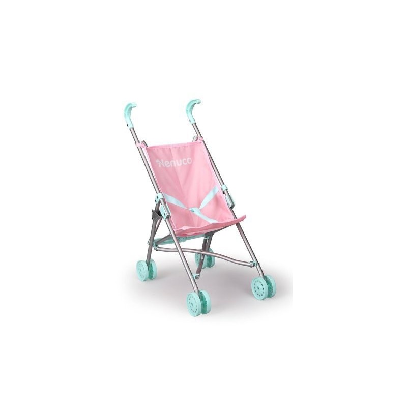 Sillita de metal desplegable con cinturón ajustable y en colores pastel, para sacar a Nenuco de paseo. Muñeco no incluido. Edad recomendada a partir de 3 años.