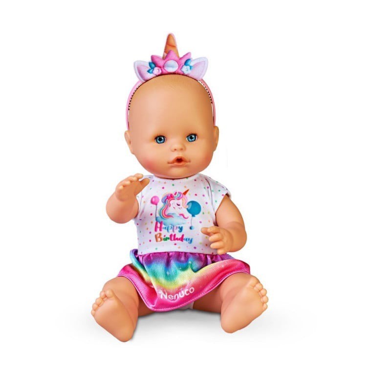 Edad recomendada: +3 años. El set incluye una tarta que los niños y niñas pueden personalizar con plastilina de 4 colores diferentes, dibujos y adorables pegatinas de unicornio. Además de la tarta, los niños y niñas pueden hacer sus propias velas y decoraciones de plastilina. La muñeca viene vestida con un precioso vestido multicolor de unicornio y una diadema de cumpleaños a juego.
