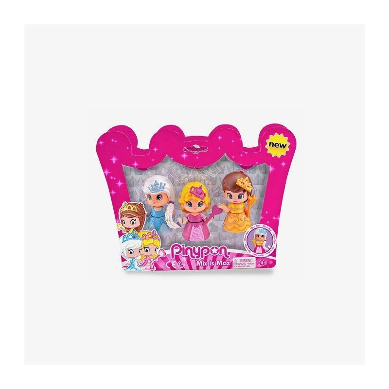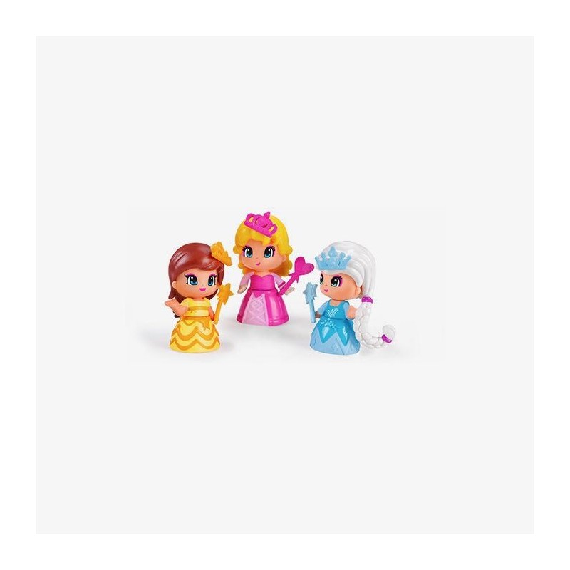 Pack de 3 mágicas Princesas Pinypon y pequeños accesorios. Cada figura mide unos 7cm aprox y está decorada con purpurina. Incluye pequeños accesorios. Las figuras de Pinypon son aptos para niños entre 4-8 años. Las Princesas de Pinypon son ideales porque puedes intercambiarles todo; la ropa, el pelo, y todos los complementos y accesorios y crear tu princesa ideal.