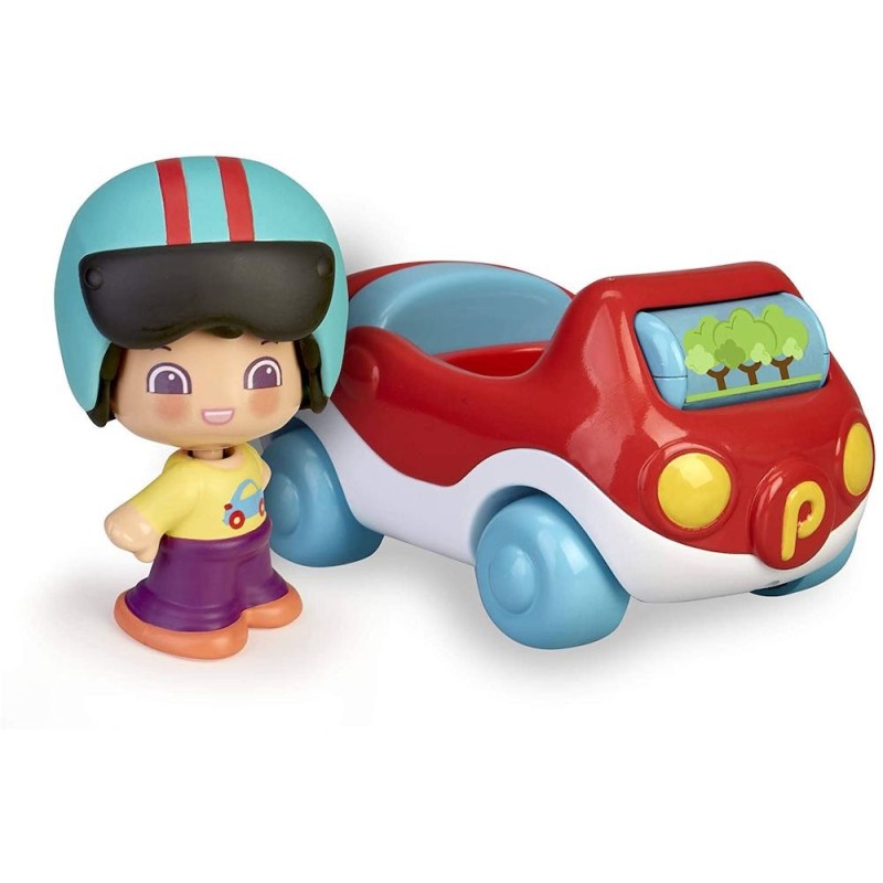 My First Pinypon. Happy Vehicles - Coche Divertido set de un coche y una figura de My First Pinypon. El coche lleva un cilindro giratorio con imágenes que estimulan el aprendizaje y las ruedas también son giratorias. La figura mide 9 cm, se compone de 2 partes intercambiables y su cara tiene 3 expresiones diferentes. Presionando sobre la cabeza se cambia la expresión de la cara. Los juguetes de My First Pinypon son para niños pequeños a partir del primer año de edad para estimular su desarrollo y para jugar. Edad recomendada: +12 meses.