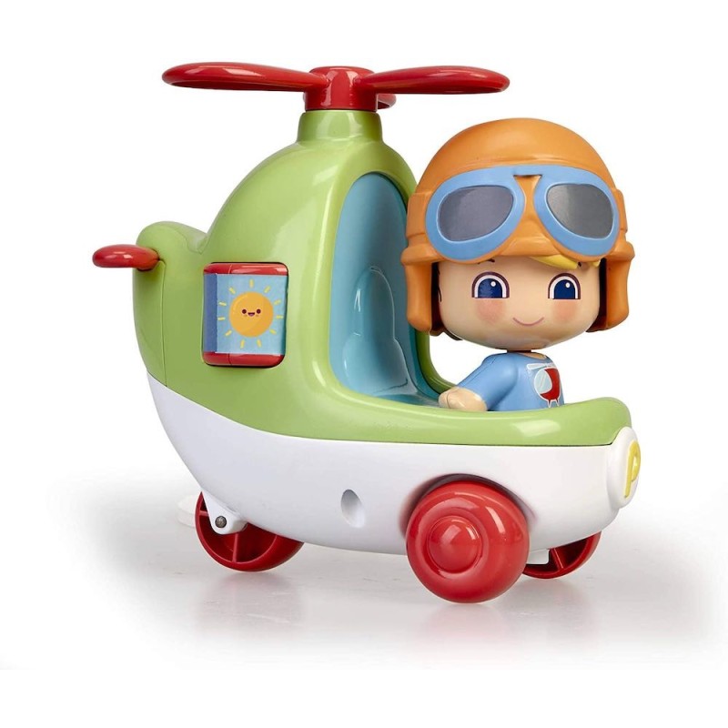 Helicóptero de My First Pinypon, Happy Vehicles. Divertido set de un helicóptero y una figura de piloto My First Pinypon. Los juguetes de My First Pinypon son ideales para niños pequeños a partir de 1 año de edad para estimular su desarrollo y para jugar. El helicóptero lleva un cilindro giratorio con imágenes que estimulan el aprendizaje y su hélice también gira. La figura de piloto mide 9cm, se compone de 2 partes intercambiables y su cara tiene 3 expresiones diferentes. Presionando sobre la cabeza se cambia la expresión de la cara. Edad recomendada: +12 meses.