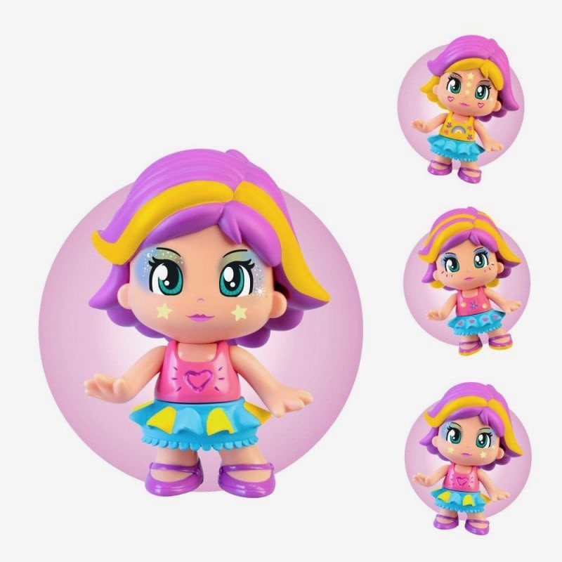 ¡Conviértete en maquilladora y decora tu Pinypon Pop & Makeup! Gran Figura Pinypon de 17cm que podrás maquillar completamente a tu gusto. Puedes crear un nuevo look decorando sus uñas con pegatinas, haciendo diseños en su pelo y su outfit con purpurina. Maquilla sus ojos, decora su cara o sus uñas con pegatinas y hazle diseños de purpurina por todo su cuerpo. Además, viene con una pintura especial con el que puedes decorar su pelo, sus uñas y sus vestidos. La pintura se quita una vez seca, así que podrás decorarlo tantas veces como quieras.