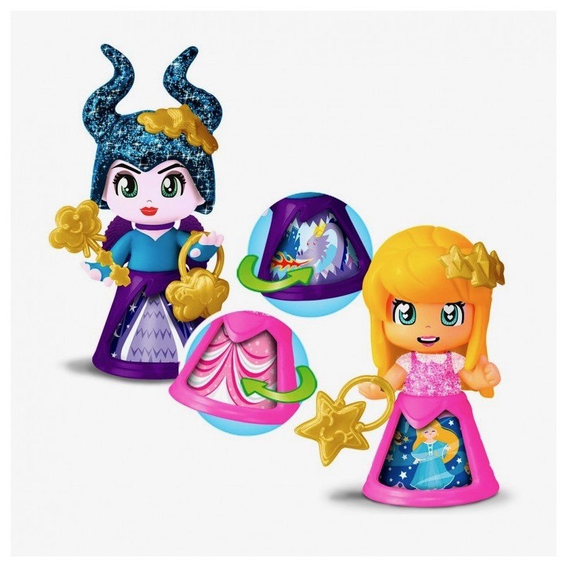La nueva edición exclusiva Pinypon Magic Dreams viene con 5 figuras exclusivas, los personajes principales del cuento la Bella Durmiente. Se incluyen las figuras de Aurora, Maléfica y las 3 Hadas Mágicas y pequeños accesorios relacionados con este cuento favorito. El contenedor tiene una bandeja con distintos compartimentos para poder tener ordenados todos los accesorios y piezas y permite llevar tu colección de Pinypon a donde quieras jugar. Incluye contenedor, bandeja con compartimentos y 5 figuras del cuento de la Bella Durmiente.