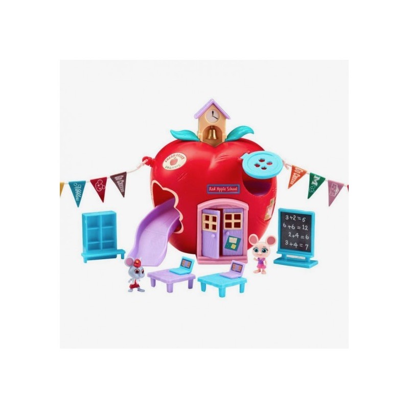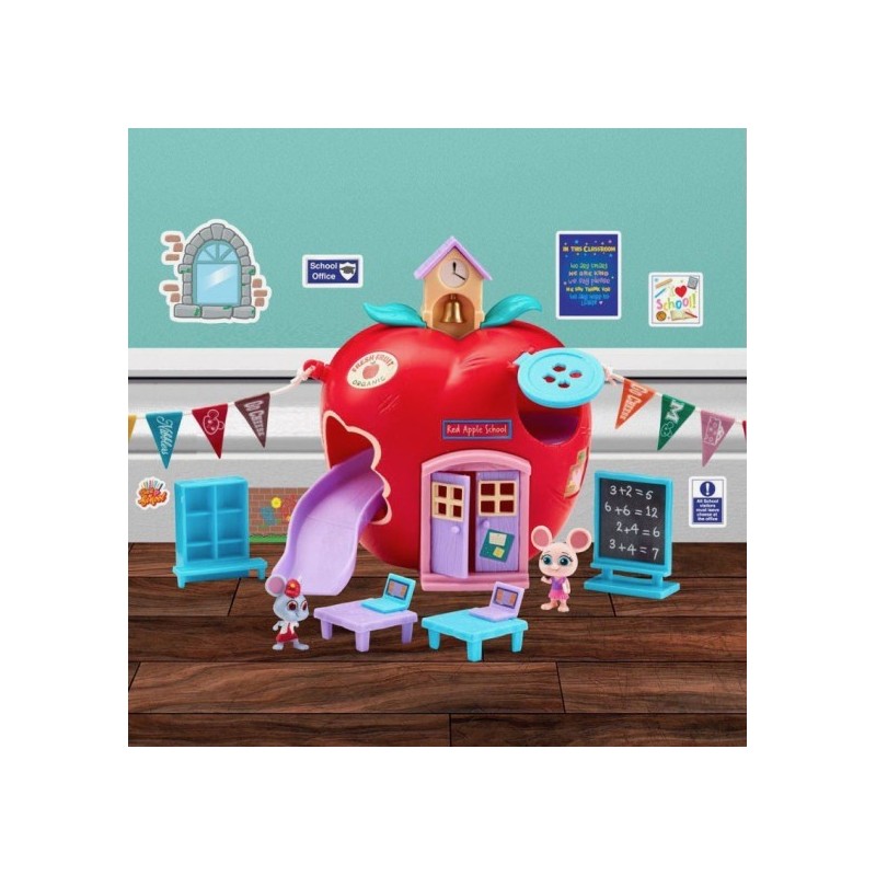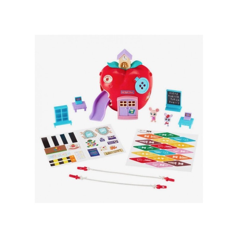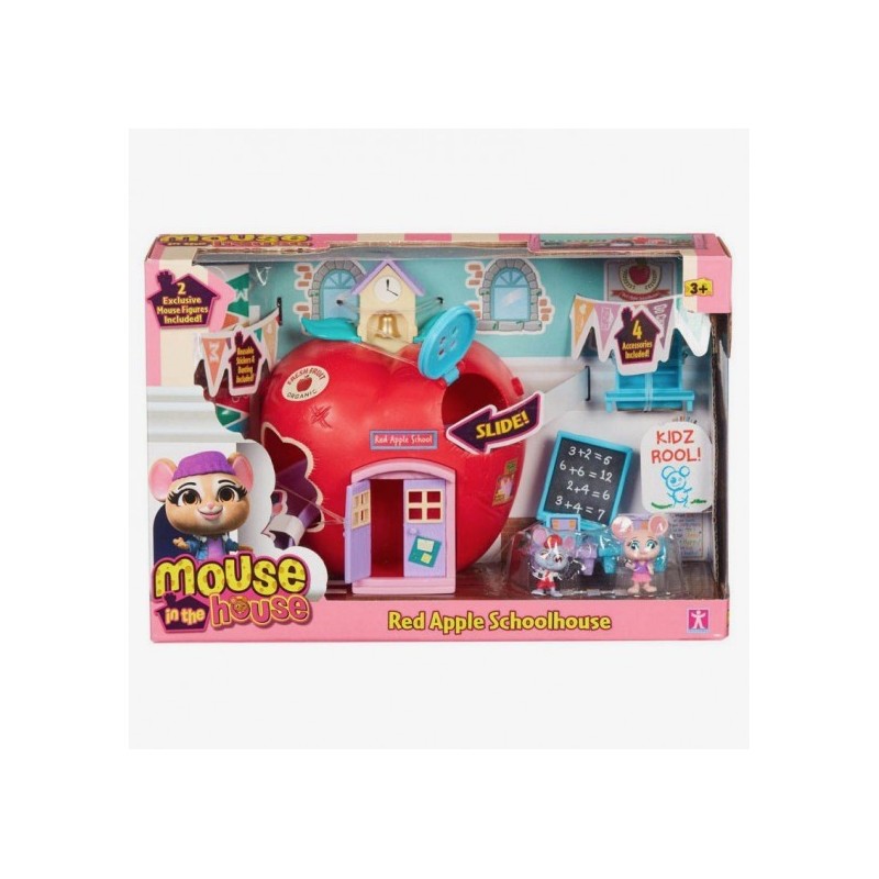 El lugar más divertido en el que aprenden los ratoncitos de Mouse in the House es el Cole Red. Este playset incluye: 2 figuras, tobogán, 2 escritorios, pizarra, taquillas, 2 cuerdas de banderín y adhesivos tipo film para los accesorios que brillan en la oscuridad.