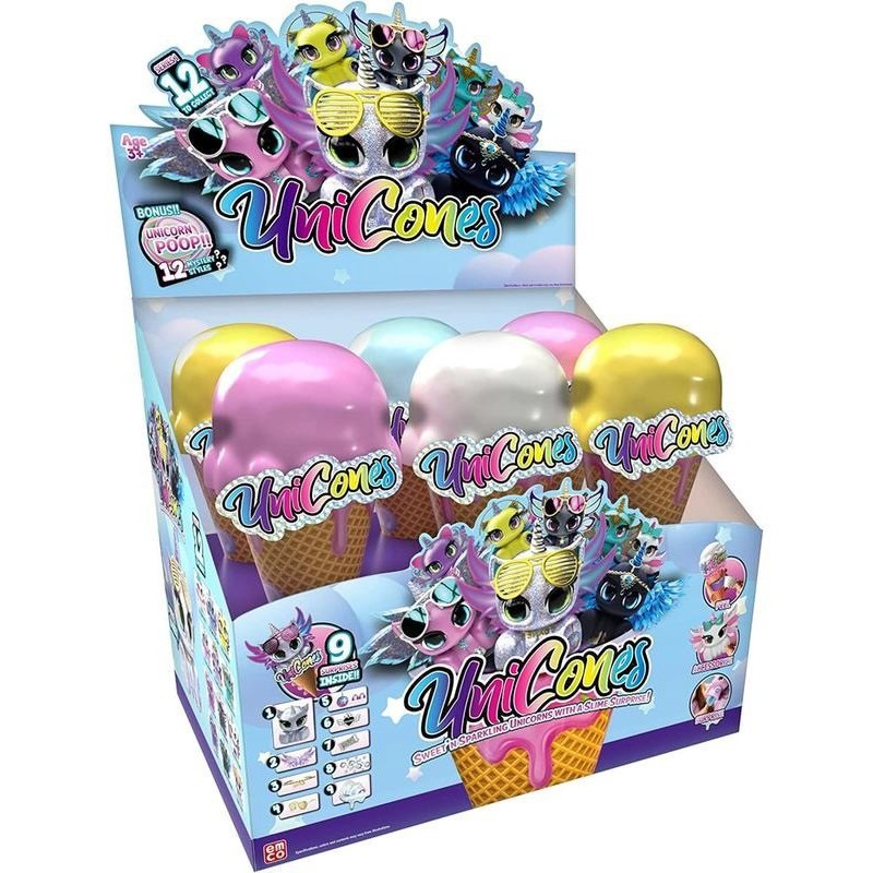 Helados de diferentes colores (Rosa, Azul, Amarillo y Blanco) para coleccionar, dado que en su interior hay numerosas sorpresas unboxing que alucinarán a las niñas y niños. Hay 12 unicornios diferentes, a quienes podrás customizar, poner accesorios e incluso tatuar. Pero no todo es esto, si no que en el interior del unicornio encontraremos un slime. También incluye unas alas para poderle poner a tu unicornio favorito ¡Querrás tenerlos todos!
