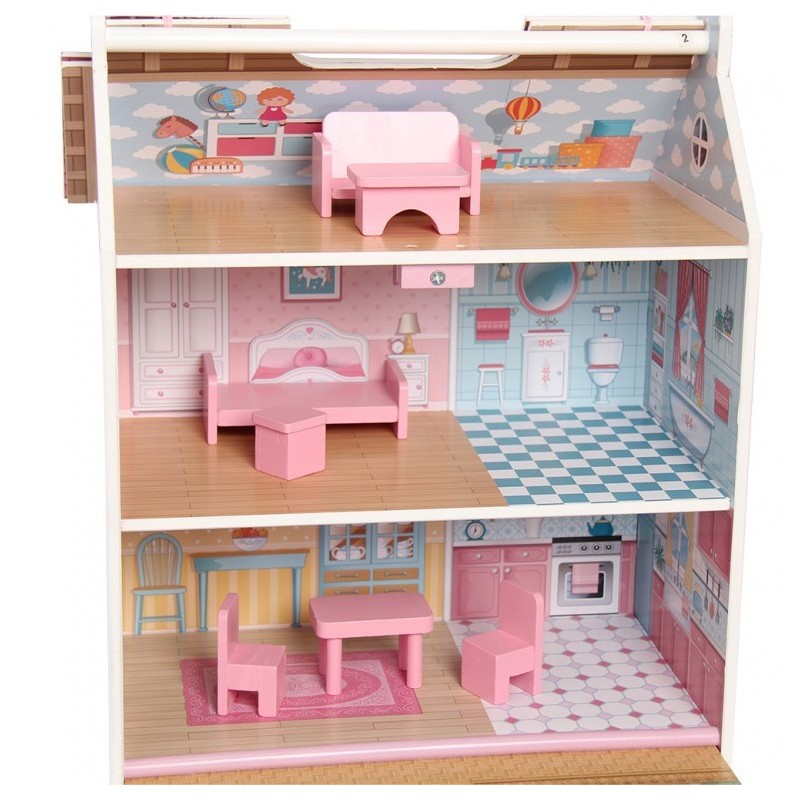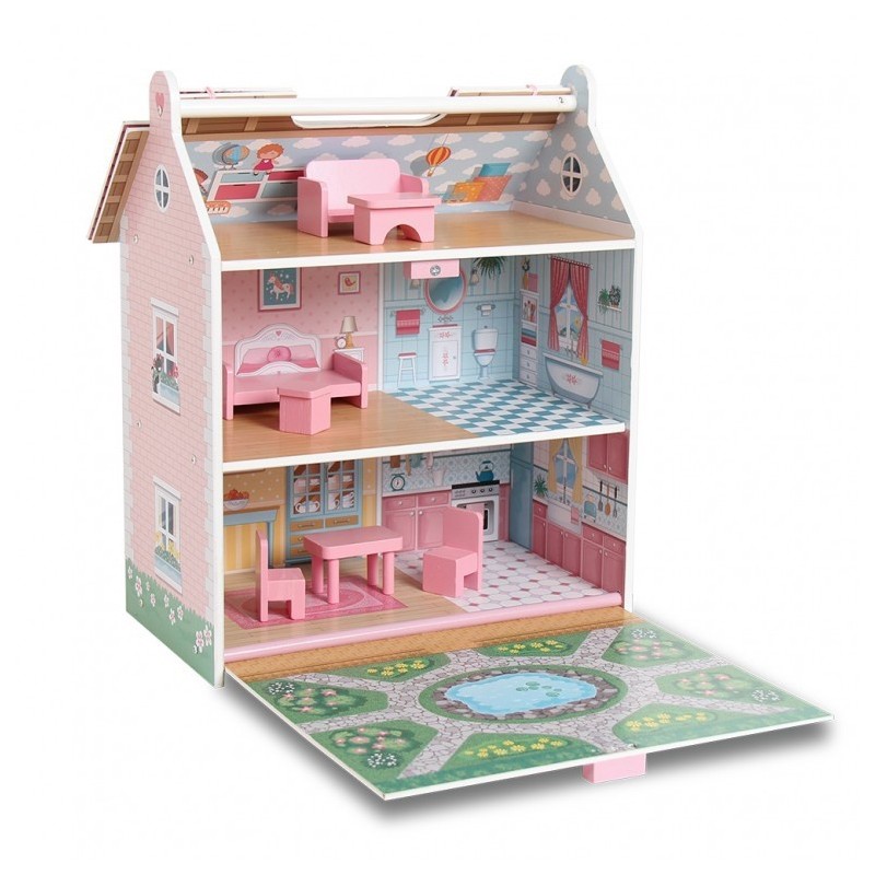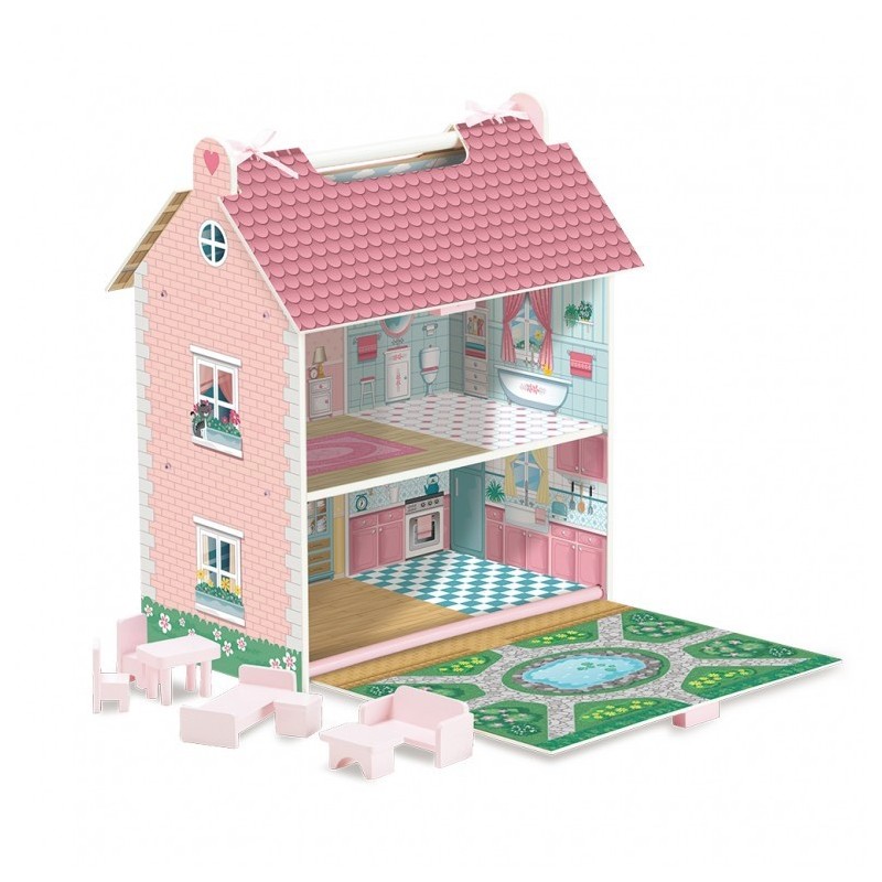 Edad recomendada: +3 años. Medida: 39 x 34 x 18 cm Casa de muñecas de calidad premium. Incluye 7 accesorios y muebles. Lleva un asa para que sea fácil de guardar y transportar todo. Tiene un diseño moderno y compacto.