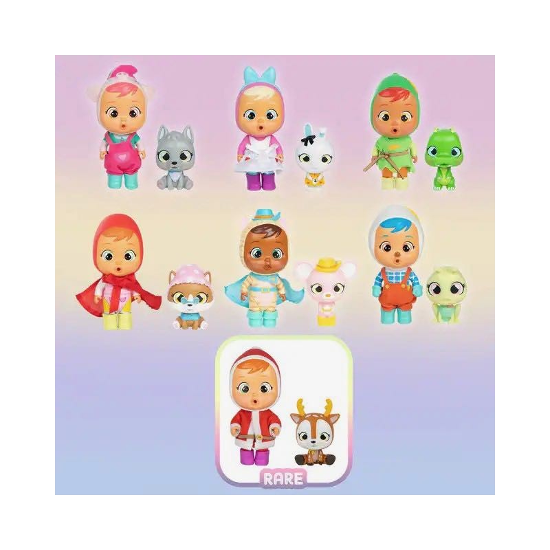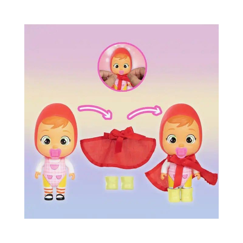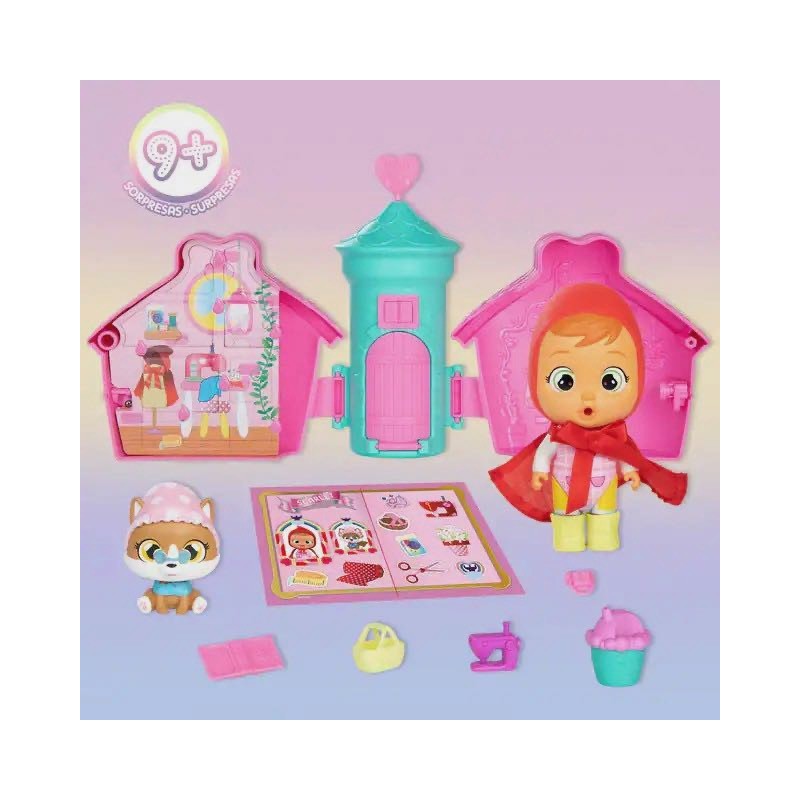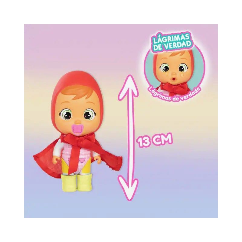 BBLL SERIES STORYLAND ¡Descubre todo el nuevo mundo de los Bebés Llorones Lágrimas Mágicas Cuentos! ¡Hay 6+ personajes de cuentos para coleccionar! ¡Cada muñeca viene con su pieza de ropa! ¡Además, cada cápsula coincide con la personalidad de cada personaje y viene con su mascota! Ábrela con la llave arco iris y descubre los 10 accesorios incluidos: un biberón mágico, un chupete, un par de zapatos, una pieza de ropa, un libro personalizado, dos accesorios únicos y una hoja de pegatinas. Además, algunas cápsulas contienen un accesorio iridiscente, ¡el lazo o el chupete! Dales de beber con su biberón mágico, apriétales su barriguita y ¡llorarán lágrimas de verdad! Las lágrimas tienen una funcionalidad mágica; cuando caen en el libro, ¡se revela una imagen de la historia! Edad recomendada: +3 años.