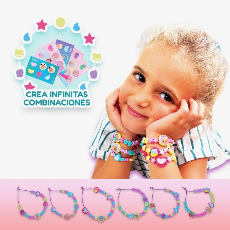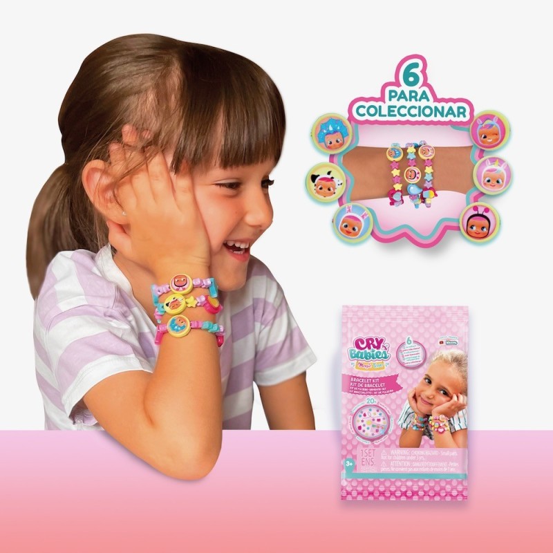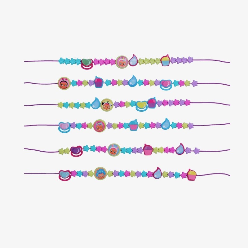 ¡Sigue la tendencia actual de las pulseras coleccionables y descubre las nuevas y modernas pulseras de los Bebés Llorones Lágrimas Mágicas! ¡Ahora puedes crear, personalizar y coleccionar tus propias pulseras de tus personajes favoritos de los Bebés Llorones Lágrimas Mágicas! Cada bolsita incluye todos los elementos esenciales para crear y personalizar tu pulsera. Hay 6 diferentes para coleccionar, cada uno de un personaje diferente; ¡Dreamy, Lady, Coney, Dotty, Tina y Jenna! ¡Cada bolsita contiene todo lo necesario para crear tus pulseras únicas! Abre la bolsita y descubre todos los elementos que necesitas para crear tus pulseras únicas de los personajes de los Bebés Llorones Lágrimas Mágicas! Incluye: 16 x Piezas en forma de estrella de colores diferentes 1 x Pieza redonda donde pegar el sticker de tu personaje 1 x Pieza en forma de biberón 1 x Pieza en forma de chupete 1 x Pieza en forma de lágrima 1 x Hilo 1 x Hoja de pegatinas Descubre la serie de los Bebés Llorones Lágrimas Mágicas en Youtube y Prime Video.