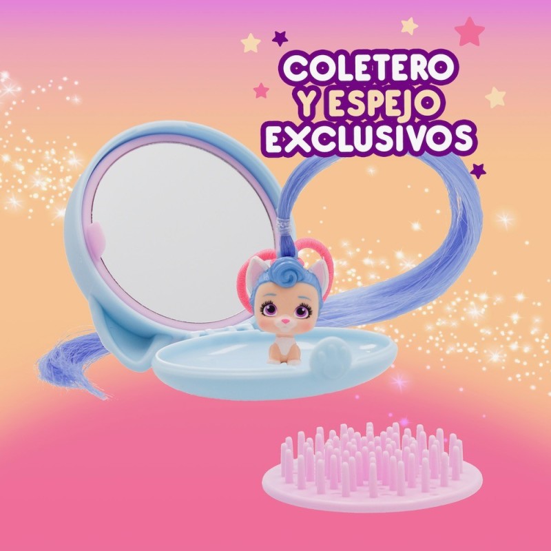 VIP Pets Tiny Styles es una colección de +12 mini muñecas que vienen en un peine portátil para que puedas lucirla perfecta ahí donde vayas, ¡como una auténtica VIP PET! Incluye un espejo que a la vez es un peine, y en el interior de la capsula puedes guardar todos tus accesorios. Puedes llevar también tu Tiny VIP Pet como accesorio de pelo para darle un toque extra a tu look o usarla para personalizar tu peine. ¡Incluso puedes llevar tu peine siempre contigo gracias a su llavero! Hay 6 diseños de peines diferentes. ¡Coleccionalos todos! Edad recomendada: +3 años.