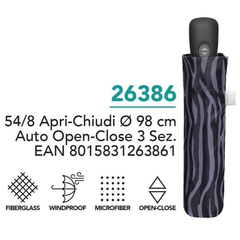 Diámetro: 98 cm. Sistema anti viento. SIstema de apertura y cierre automático.