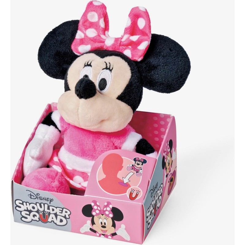 Siempre contigo - Magia Disney en todas partes: con el adorable peluche de Minnie Mouse en el hombro, la ratoncita favorita de los fans de Disney a partir de 0 años está siempre al alcance de la mano, ¡incluso cuando están fuera de casa! Sujeción magnética - Gracias al ingenioso sistema de imanes, Minnie se coloca de forma segura y estable en el hombro: basta con colocar el imán incluido debajo de la ropa y colocar el peluche encima. Alta calidad y riqueza de detalles - ¡Ni que decir tiene que la adorable figura Disney en su versión como peluche de felpa suave lleva su icónico vestido de lunares y el gran lazo en la cabeza! Licencia oficial - Lleva la magia de Disney a casa: Conocidas de los Parques Disney, las figuras «Shoulder Squad» con personajes populares como Mickey, Minnie & Stitch ¡están disponibles con nosotros!