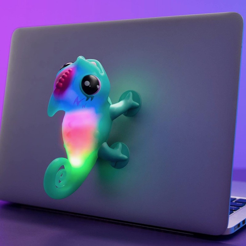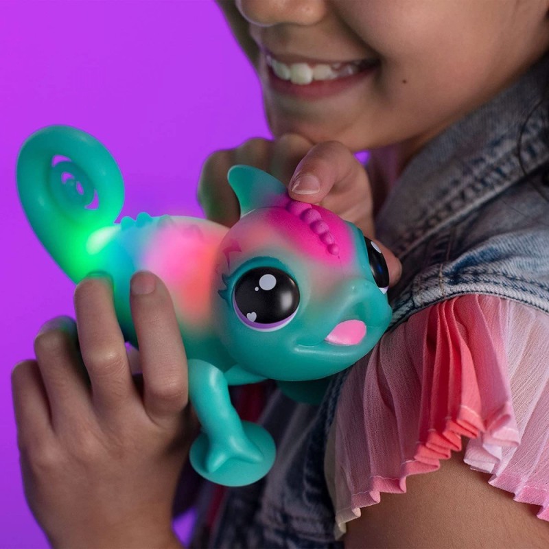 La nueva mascota de Little live pets es Sunny, un camaleón interactivo que se ilumina cambiando de color para expresar su estado de ánimo, hace hasta 30 sonidos diferentes, canta, brilla y repite lo que dices. Tiene dos modos de juego, el de alimentación y el de diversión. ¡Agítalo para que comience la fiesta! Sunny está lleno de personalidad y tiene muchos estados de ánimo diferentes que podrás descubrir mediante sus luces de colores y sonidos. Se ilumina de color verde y se ríe cuando está feliz, se pone de color rojo cuando está enfadada, brilla de color azul y lloriquea cuando está triste. ¡Y muchas cosas más! Habla a Sunny con voz calmada y amigable, y te responderá encantado. Pero, ten cuidado, si tu voz es demasiado alta, va a pillar por sorpresa a Sunny y se puede enfadar o asustar. Y se pega con las ventosas donde quieras como un camaleón real! Edad recomendada: +5 años.