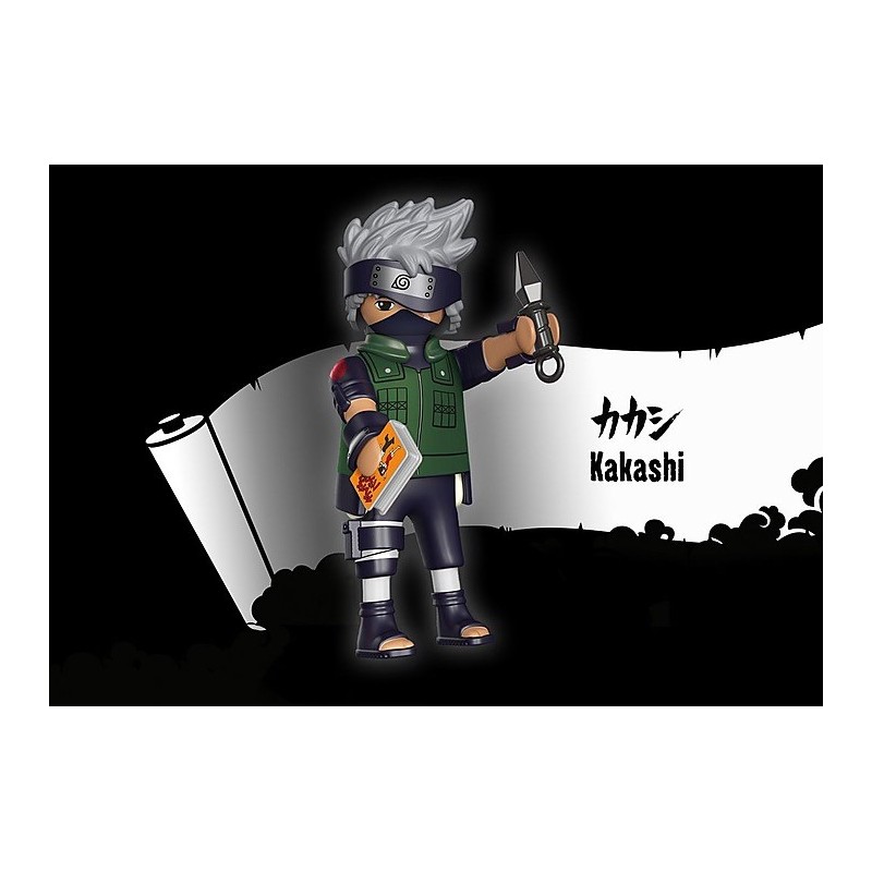 Es el maestro del Equipo 7 (Naruto, Sasuke y Sakura) y se le conoce como "ninja copia". Kakashi Hatake es un ninja experimentado y el maestro de Naruto, Sasuke y Sakura. Con su actitud tranquila y relajada, Kakashi siempre consigue mantener unidos a los miembros del Equipo 7. El set de juego contiene al personaje de Naruto Shippuden, Kakashi, con un perro, un kunai y un libro. Durante dos décadas, el anime Naruto Shippuden ha entusiasmado a los fans de todo el mundo. Justo a tiempo para el 20 aniversario, 24 personajes únicos de la popular serie aparecen por primera vez en formato PLAYMOBIL. Con grandes detalles y auténticos extras, las figuras diseñadas con precisión invitan a recrear escenas legendarias e inventar nuevas historias. Diversión creativa para los fans del anime de todas las edades.