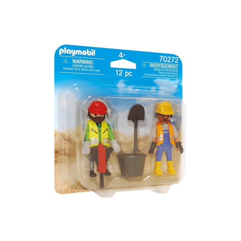 Obreros con martillo neumático, pala y cubo. Edad recomendda: +4 años.