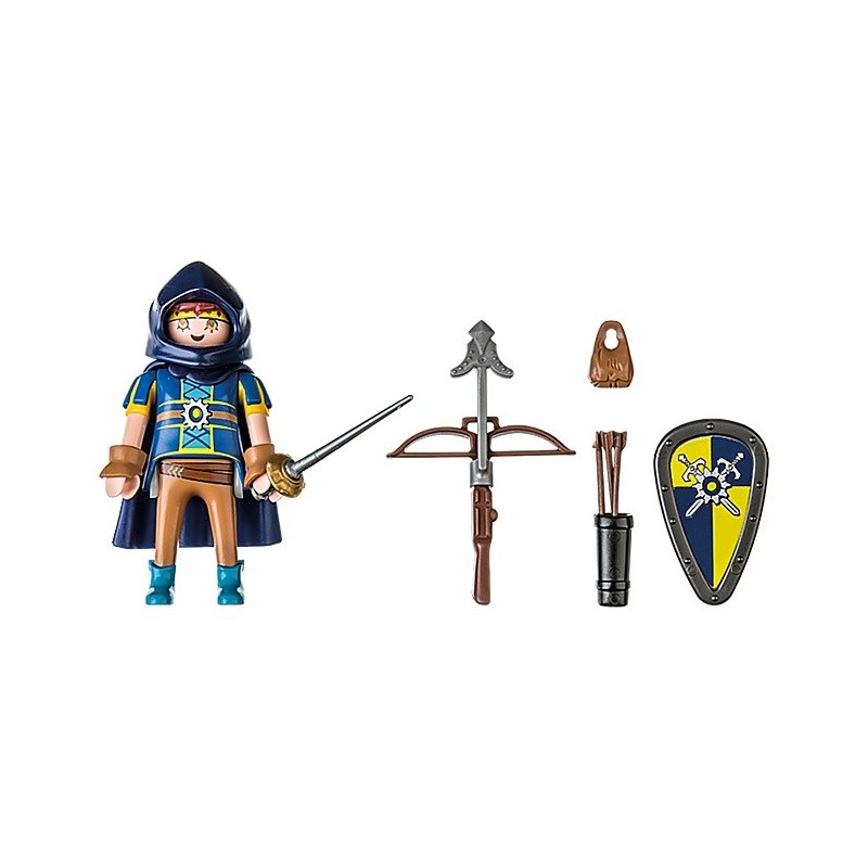 Gywnn está preparado con espada y ballesta para cualquier situación de combate. La rebelde Gwynn siempre está al frente de todas las batallas. Bien equipada con ballesta, escudo y estoque, se lanza con valentía hacia la acción. ¡Los asaltantes de Burnham deben tener cuidado! Un regalo o recuerdo ideal para los fans de Novelmore a partir de 4 años. Detalles del producto: Contiene 14 piezas e incluye al caballero Gwynn de Novelmore con capa, escudo, ballesta y otros accesorios para vivir emocionantes aventuras de caballero. Los puños de los brazos, la capa y la cabeza son desmontables. Además, el set incluye unas estupendas pegatinas y una tarjeta comercial de Gwynn. Juega con este set por sí solo o combínalo con los demás juguetes de caballero del mundo Novelmore.