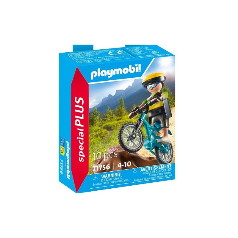 PLAYMOBIL Especial Plus Ciclista de montaña, bici y obstáculo. ¡Descubre senderos con el ciclista de montaña de PLAYMOBIL! Perfecto para aventuras llenas de adrenalina, este producto incluye una bicicleta de montaña equipada con un práctico caballete para paradas rápidas. El ciclista lleva protectores de brazos extraíbles y un resistente casco, listo para enfrentarse a los terrenos más desafiantes. Incluye una roca como obstáculo que es perfecta para practicar saltos y acrobacias. Ya sea recorriendo sinuosos senderos o conquistando empinadas subidas, este ciclista de montaña siempre está listo para un emocionante paseo. Ideal para niñas y niños aventureros y entusiastas de las actividades al aire libre, ¡este Special Plus de PLAYMOBIL promete un sinfín de juegos imaginativos dentro y fuera de los senderos!