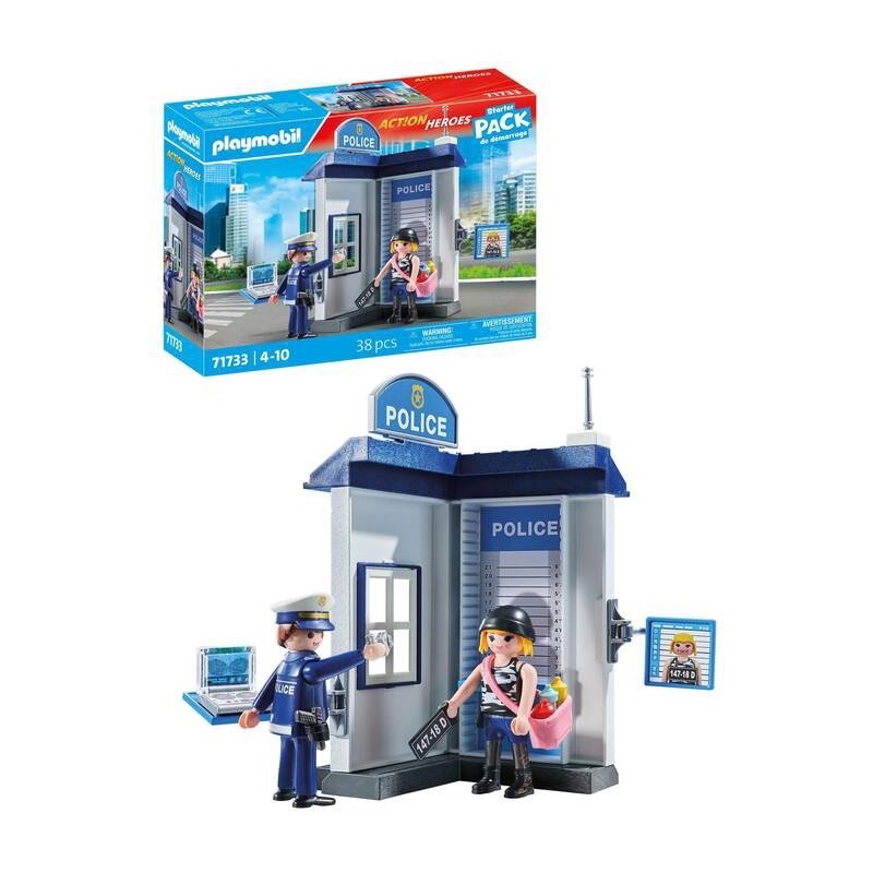 Ayuda al policía a descubrir quién se usaba los botes de spray en el exterior, haz fotos del posible autor y compara sus huellas dactilares con las del portátil. Resuelve el caso con el interrogatorio en la sala de policía de PLAYMOBIL. Equipado con una cámara de fotos, un tablero de pruebas giratorio y un ordenador portátil para analizar huellas dactilares, los detectives pueden sumergirse en un juego de investigación realista. Accesorios como botes de spray, gorras y una pistola enfundada aumentan la emoción. Con ventanas enrejadas y una mesa giratoria, ¡este producto es perfecto para contar historias imaginativas o para ampliar tus aventuras en la comisaría!