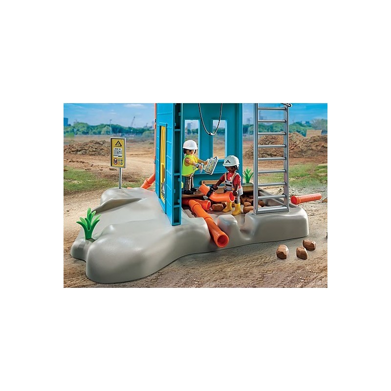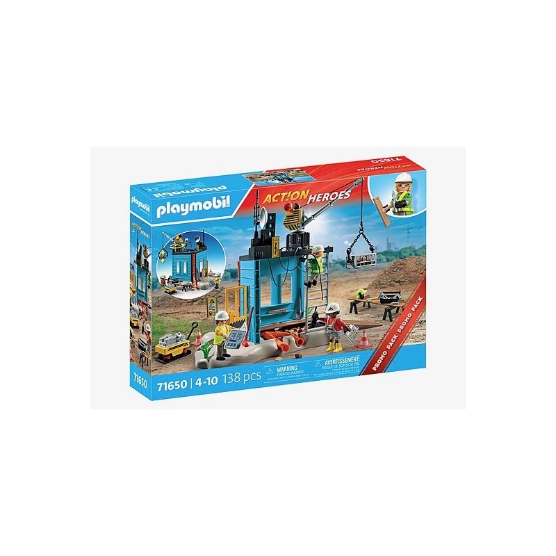 ¡Manos a la obra! Incluye tres figuras PLAYMOBIL y muchos otros fantásticos extras para divertirse construyendo. ¡Siempre hay algo que hacer en la obra! El andamio de acero ya está colocado y ahora el técnico electrónico está colocando el cable en el tejado. Por supuesto, lleva casco y guantes y está bien sujeto con un arnés. Los objetos pesados se suben fácilmente al tejado con el cabrestante. Con muchos más accesorios de construcción. Contenido: Figuras: 1 mujer, 2 hombres; Accesorios: 1 accesorio para guantes, 1 arnés, 3 cascos de obra, 1 reloj de pulsera, 1 compactador, 1 caja de herramientas, 1 mesa de obra, 1 cabrestante, 3 cables de silicona.