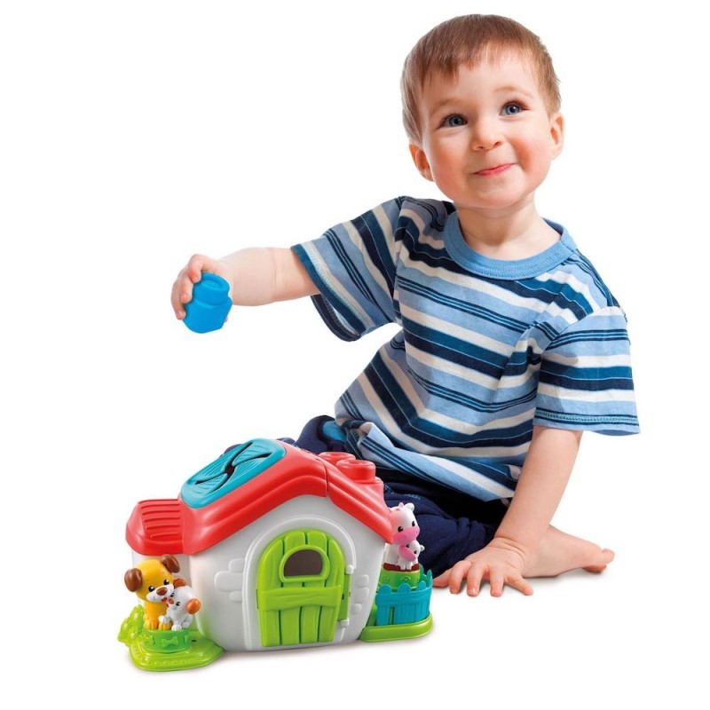 Edad recomendada: 6-36m. Tamaño: 26x24x13cm. Un set de juego de granja con texturas en relieve, piezas blandas típicas de la línea Clemmy, muchos bloques y dos simpáticos personajes y actividades mecánicas. Una de las vertientes del tejado incluye una pieza blanda en la que introducir los bloques, mientras que la otra se abre para poder recuperarlos. Las superficies blandas y las texturas sensoriales en relieve estimulan la exploración y el desarrollo del tacto. Las actividades ayudan a desarrollar la lógica, la destreza manual y la coordinación.
