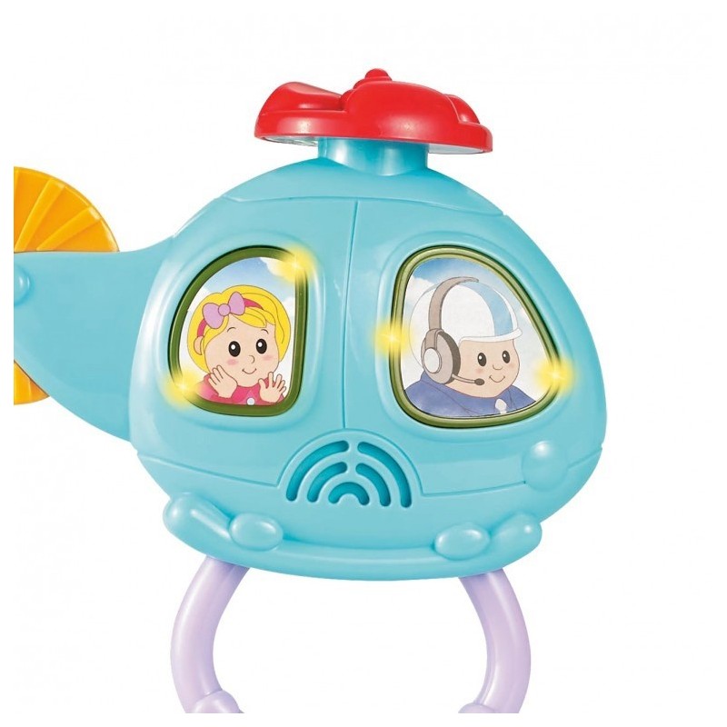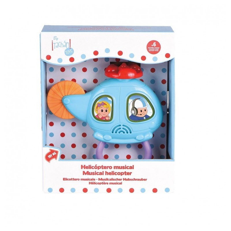 Edad recomendada: +6 meses. Un juguete musical para los bebés, que estimula sus sentidos y forma parte de sus primeros aprendizajes mediante la asociación y la coordinación mano y ojo. Incluye sonidos y música, un asa para facilitar el agarre del juguete a los más pequeños y una ruleta como aspas del helicóptero para mejorar la motricidad fina. Funciona con 2 pilas de tipo AAA que vienen incluidas.