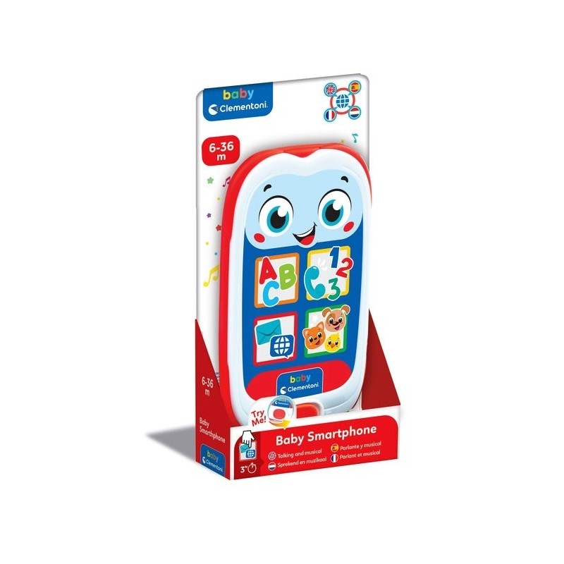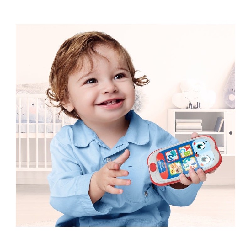 Edad recomendada: 6 meses. Es un divertido teléfono electrónico que habla con pantalla ilustrada y luminosa que imita a los teléfonos móviles de los adultos. Con una gran variedad de funciones interactivas, 4 canciones y 5 rimas infantiles. Enseña las primeras letras, los primeros números, una gran variedad de palabras nuevas y el sonido de 3 cachorros: el perro, el gato y el pajarito. Estimula la destreza manual, así como la percepción visual y auditiva. Ayuda a desarrollar el lenguaje. 4 grandes botones luminosos en la pantalla.