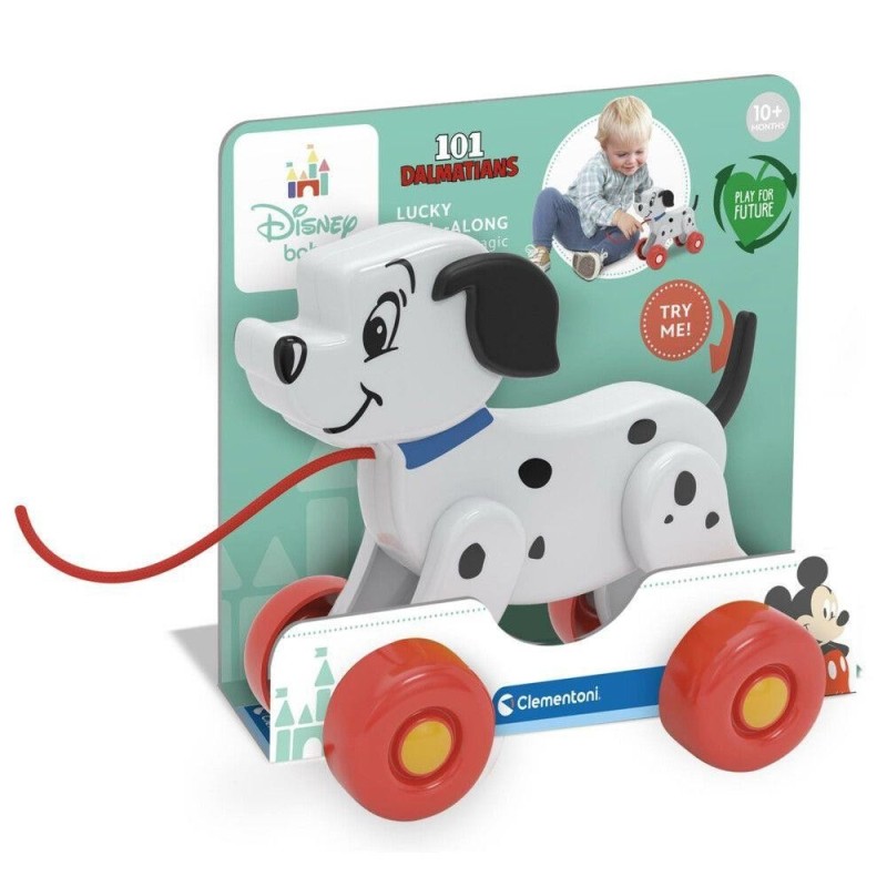 Arrastre Perro 101 Dálmatas será el compañero de juegos perfecto que el niño podrá llevar siempre a todas partes. Gracias a las ruedas y la cuerda, el niño podrá vivir miles de aventuras junto al simpático dálmata. Cuando el personaje se mueve, sube y baja la cola, lo que estimula y engancha al niño. Un juego diseñado para animar al niño a moverse y estimular su imaginación. Edad recomendada: +10 meses.